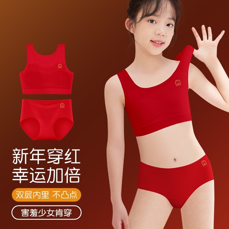本命年内衣儿童背心发育期文胸少女学生红色内裤套装12岁2025固定