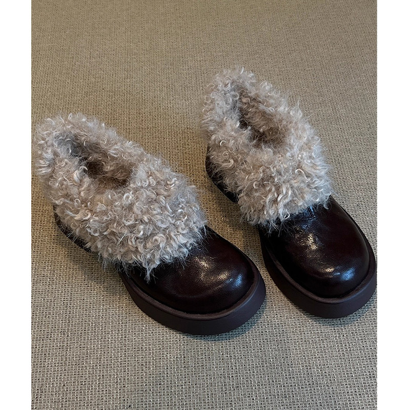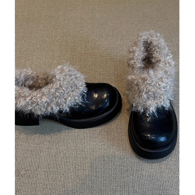 小众复古厚底玛丽珍鞋女2025年新款百搭圆头加绒加厚保暖毛毛棉鞋