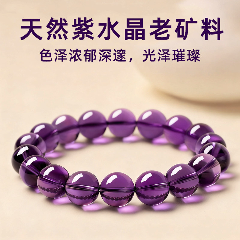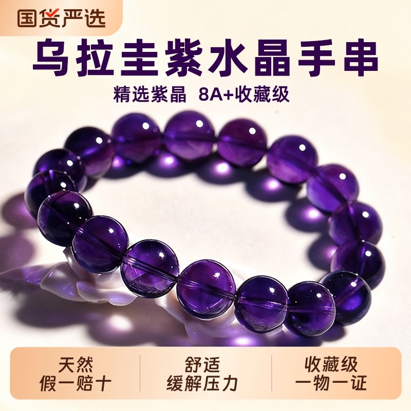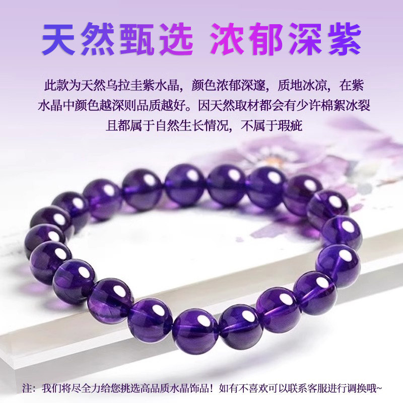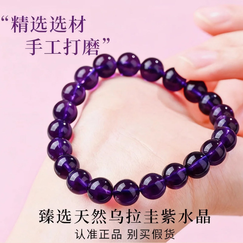 真天然紫水晶手串女收藏级九紫离火乌拉圭净体水晶手链男生日礼物