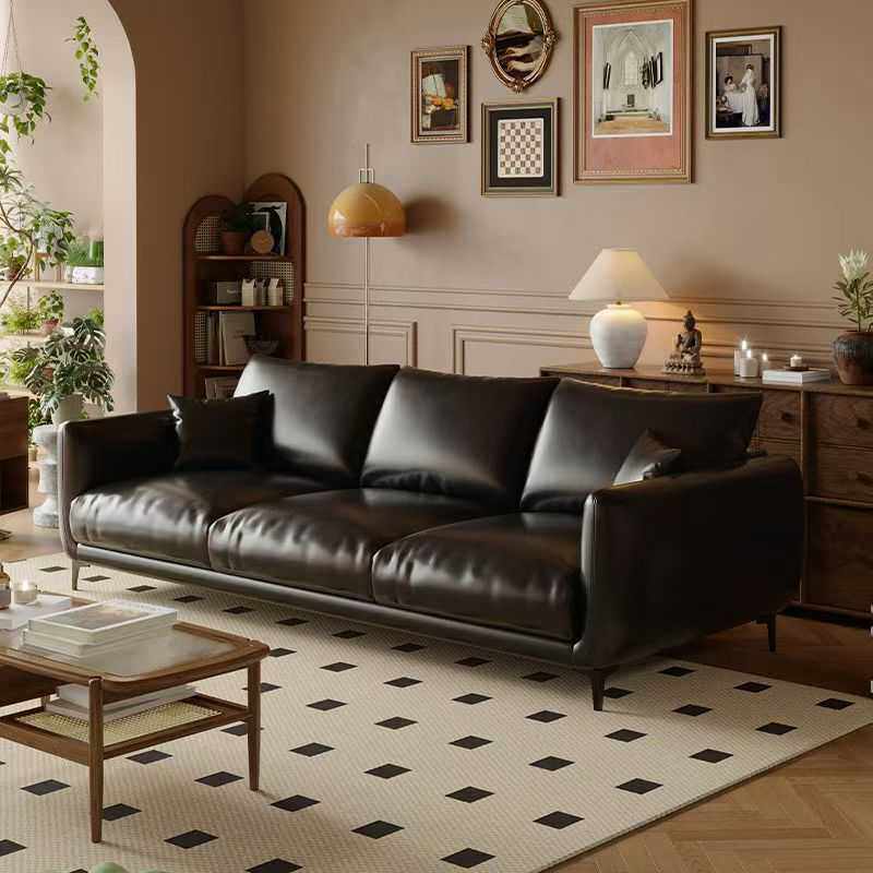 意式简约直排皮艺沙发现代沙发美式复古风免洗油蜡皮客厅小户型