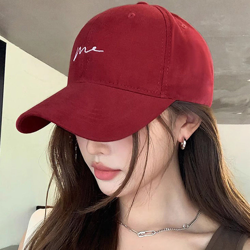 酒红色大头围帽子棒球帽大脸显脸小宽帽檐女加大加深顶红色鸭舌帽