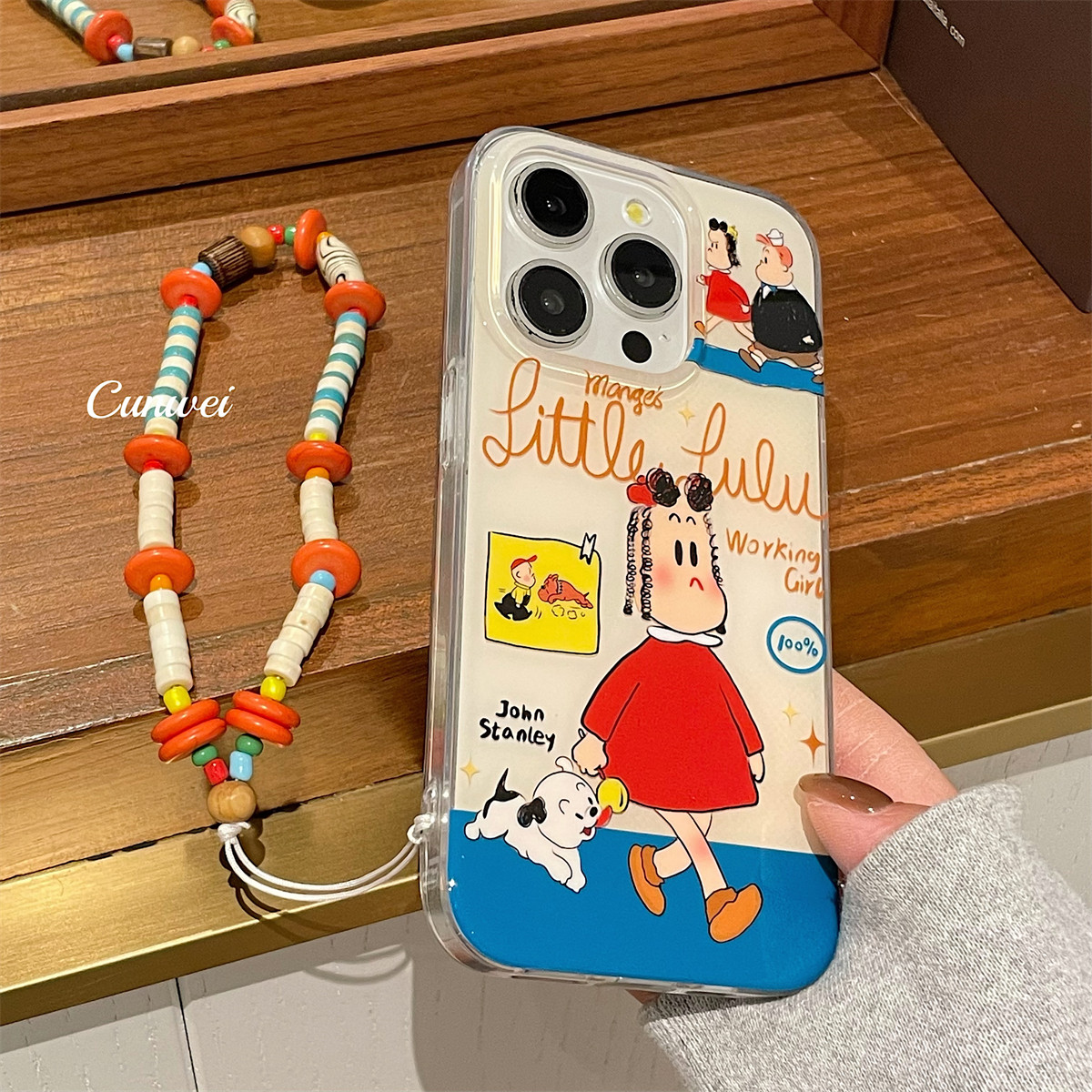日韩趣味卡通女孩适用iphone15promax苹果16手机壳新款17女款链条12pro超火13pro双层14pro全包防摔保护套