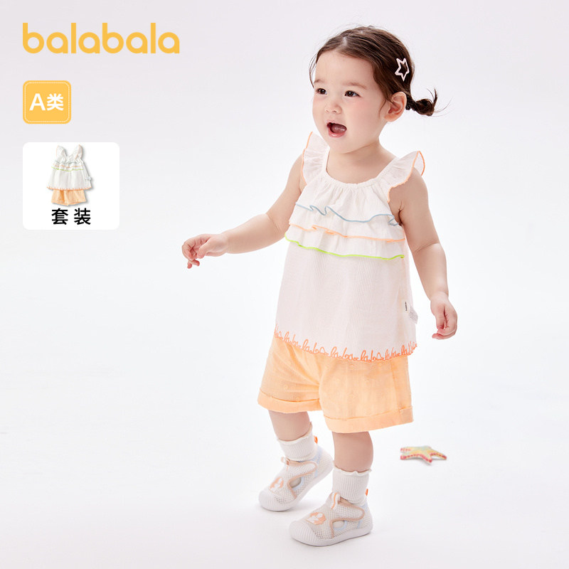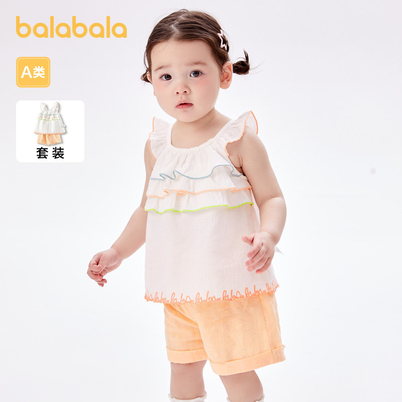 巴拉巴拉女童夏装婴儿短袖套装宝宝两件套甜美荷叶边时尚别致气质
