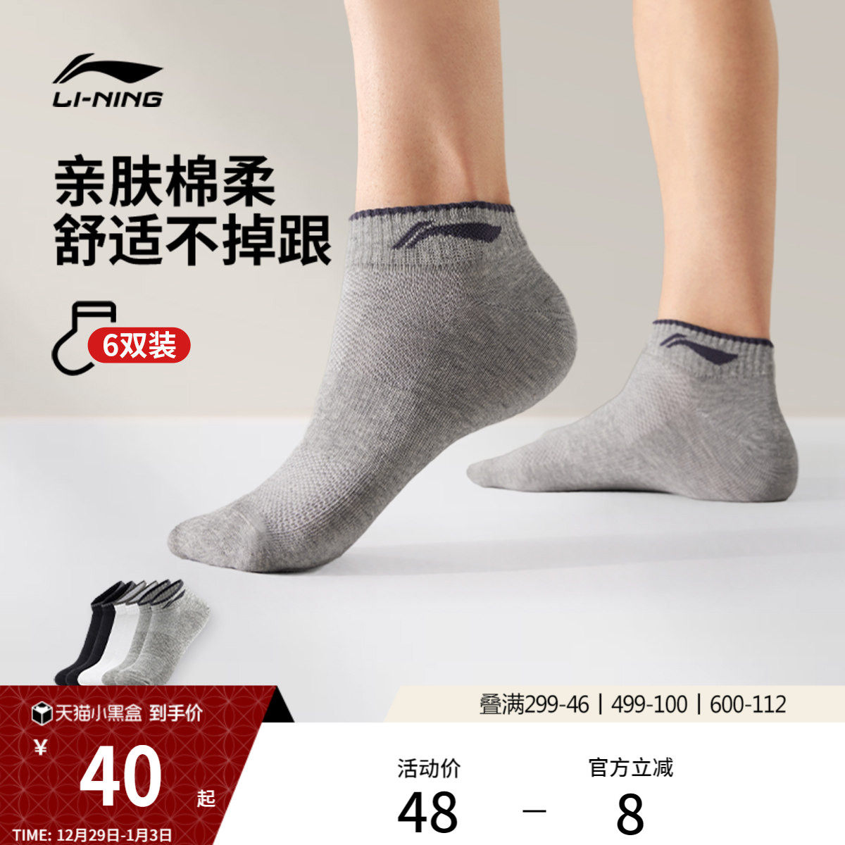李宁袜子男女款正品青少年专业跑步运动防臭抗菌吸汗黑色棉质短袜