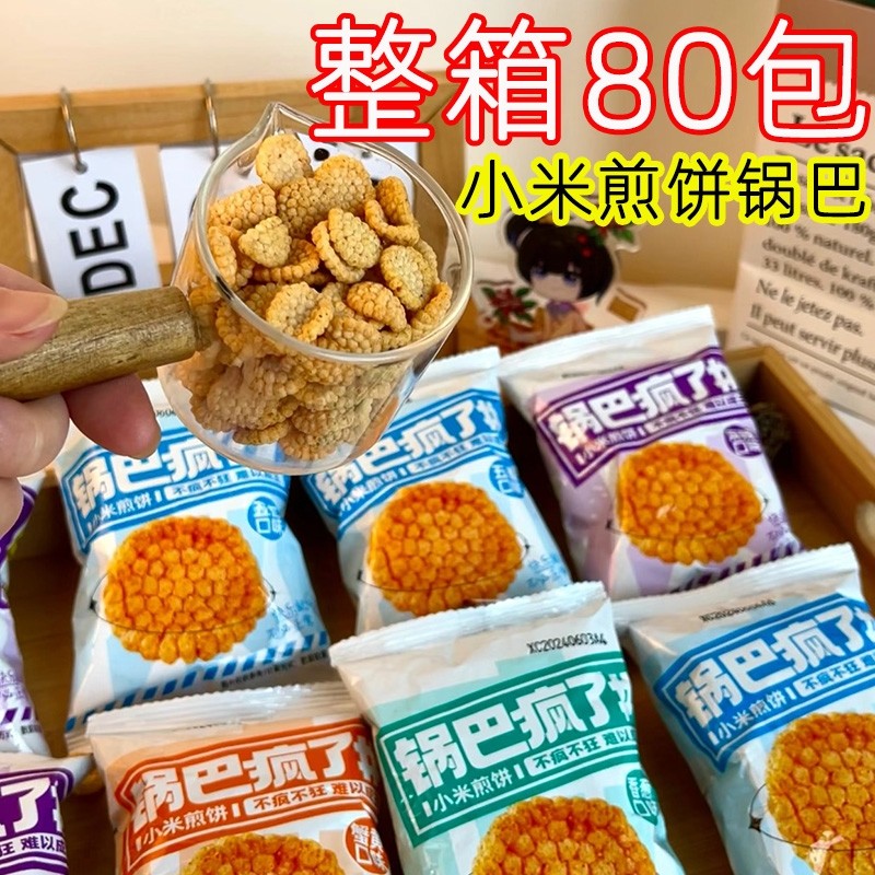 锅巴疯了小米煎饼网红爆款办公室小吃解馋耐吃小零食休闲怀旧麻辣