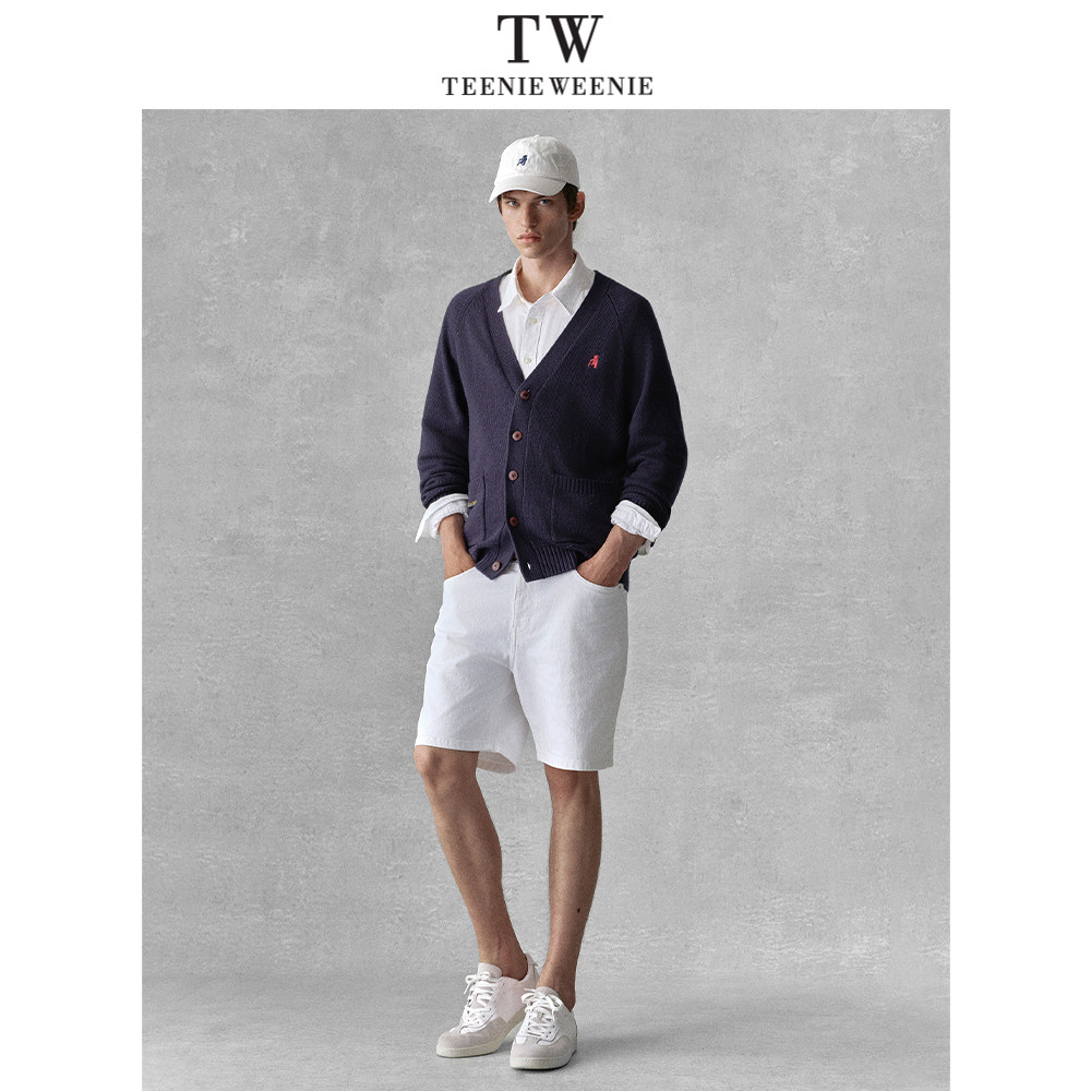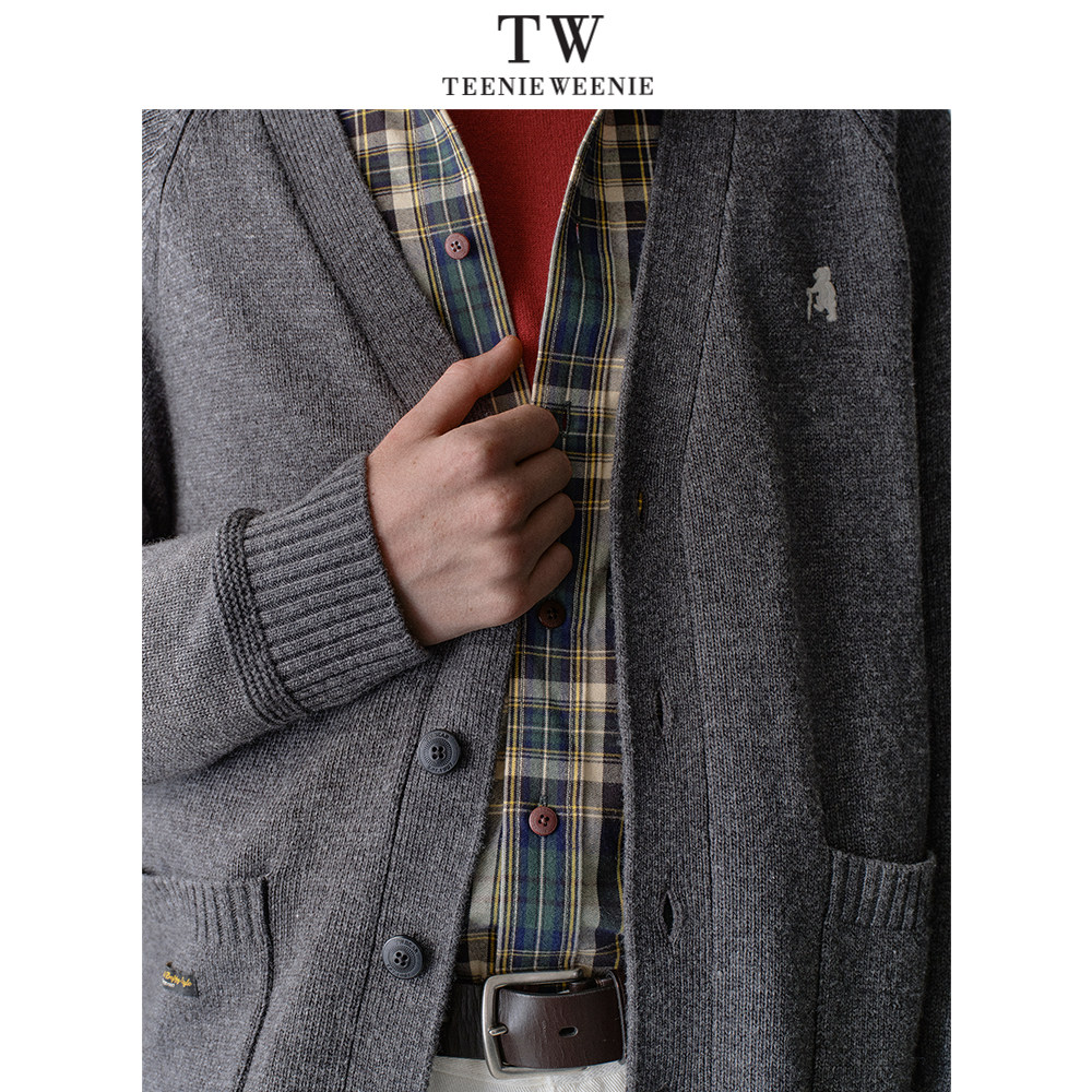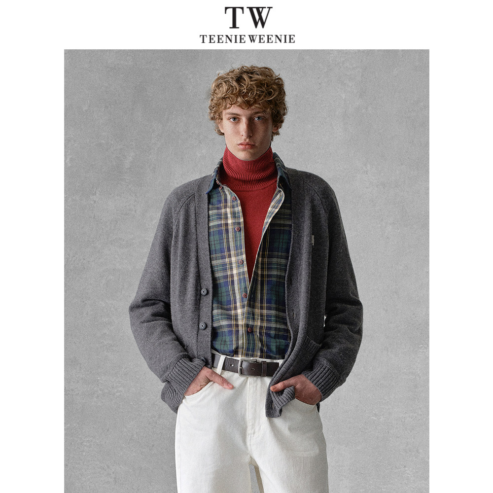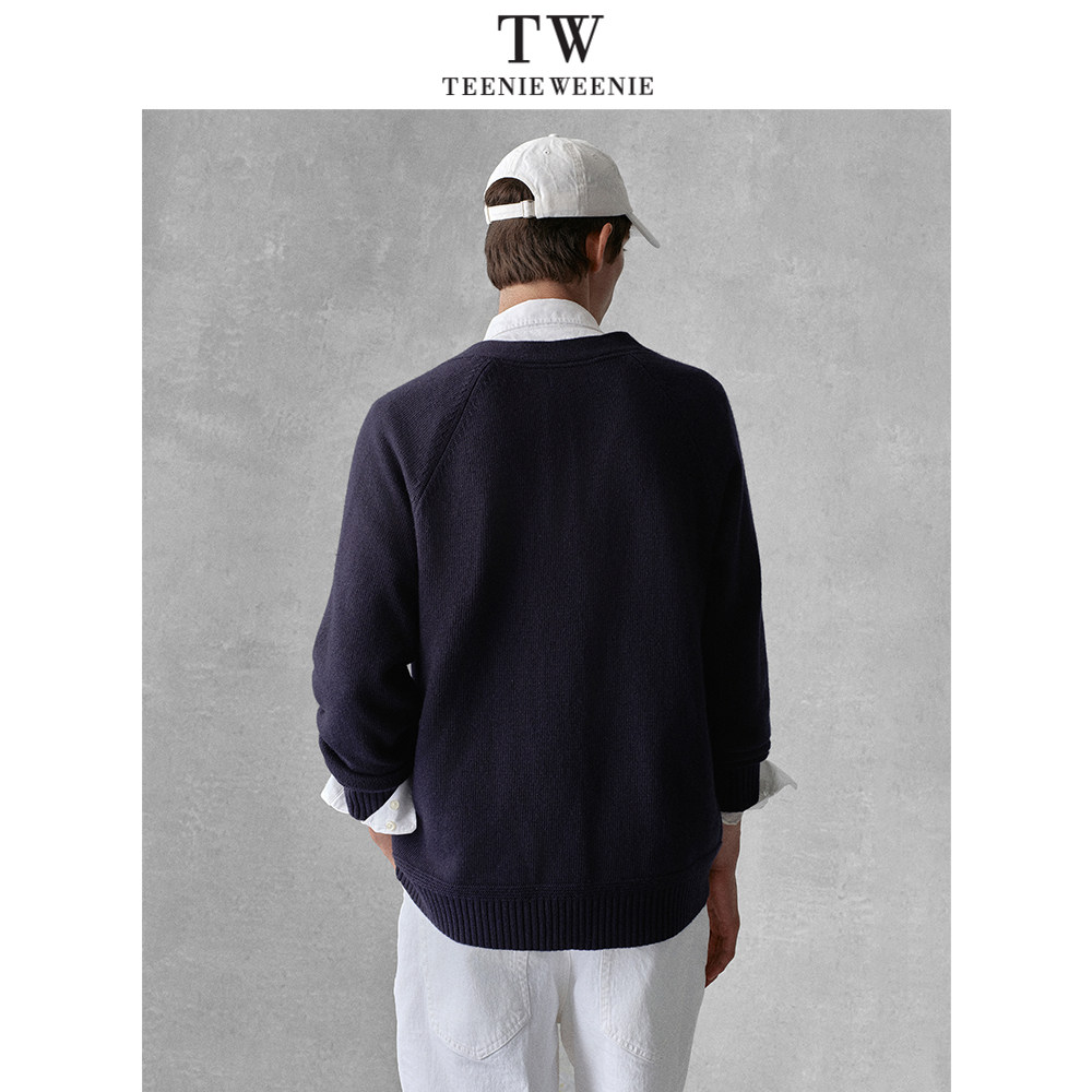 Teenie Weenie小熊男装休闲日常微阔插肩袖V领羊毛混纺针织开衫