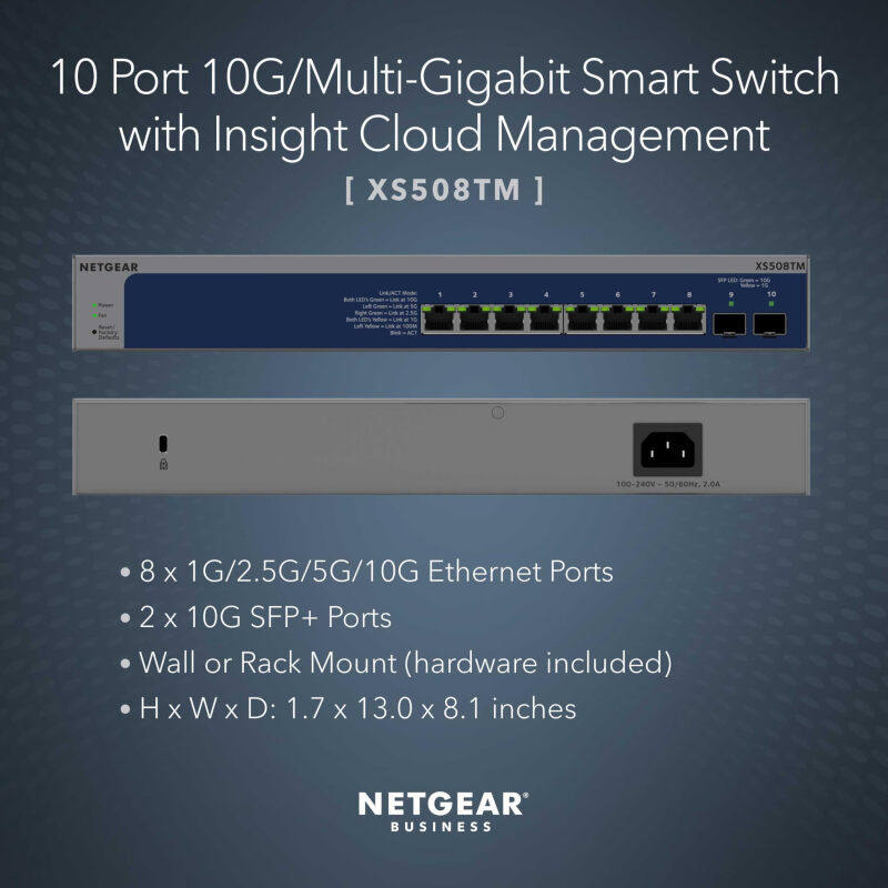 正品国行NETGEAR网件 XS508TM/XS508M 10口万兆10G多千兆智能交换机带8个多千兆端口2个10G光口SFP+
