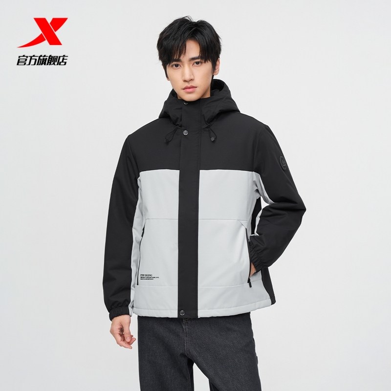 鸿星尔克加绒外套男款冬季新款男士冲锋运动跑步防风夹克加厚风衣