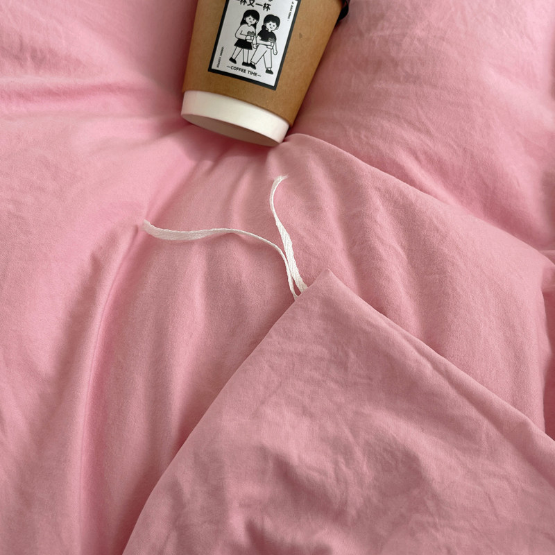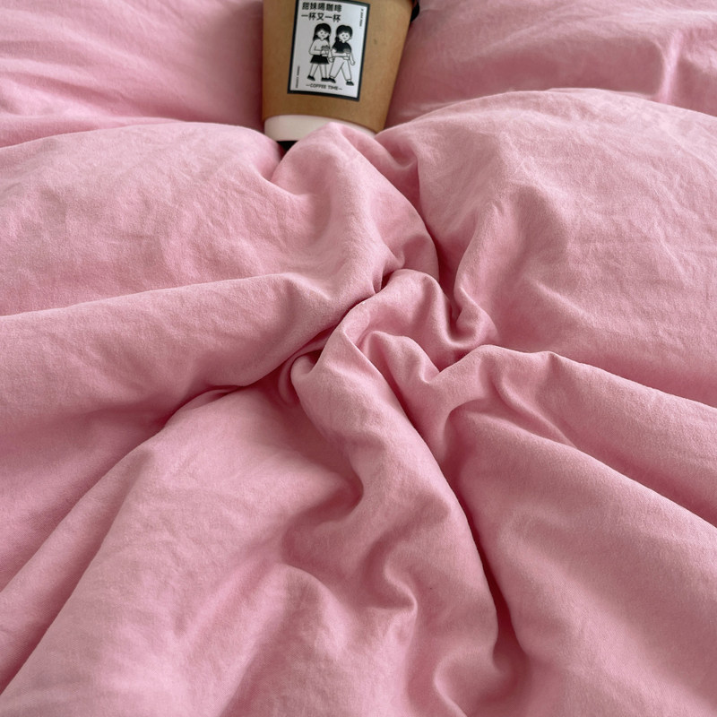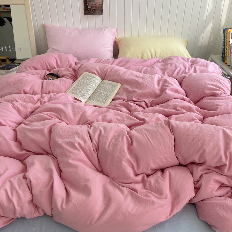 ins风纯色混搭双色水洗棉四件套床单床笠床罩床上用品三件套