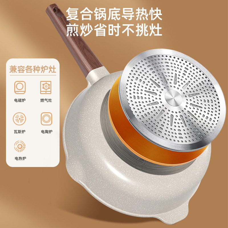 麦饭石不粘锅炒菜锅平底锅炒锅多功能牛排煎锅煎蛋神器电磁炉适用