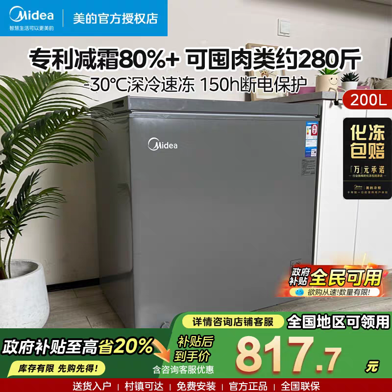 以旧换新补贴美的冰柜200升家用小型卧式冷柜冷冻冷藏两用大容量