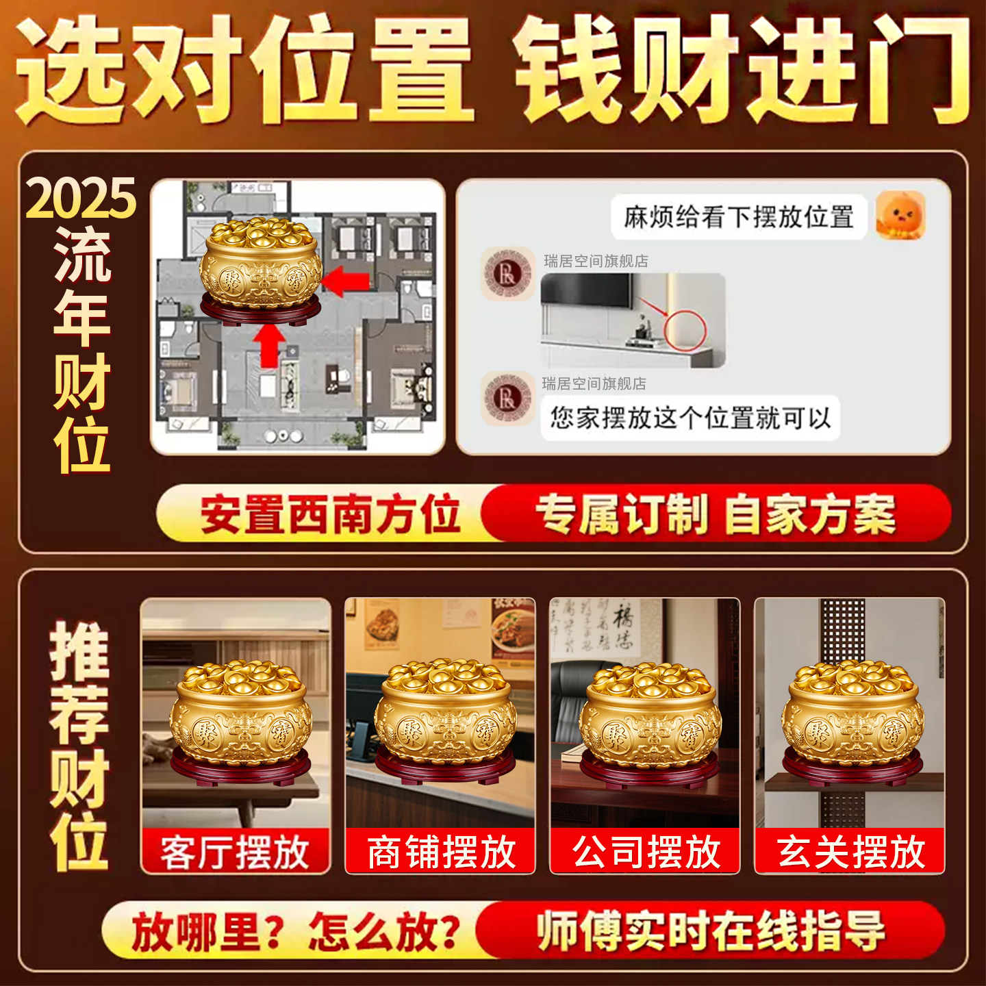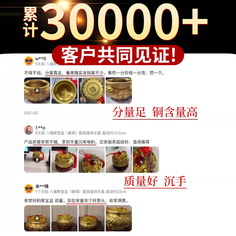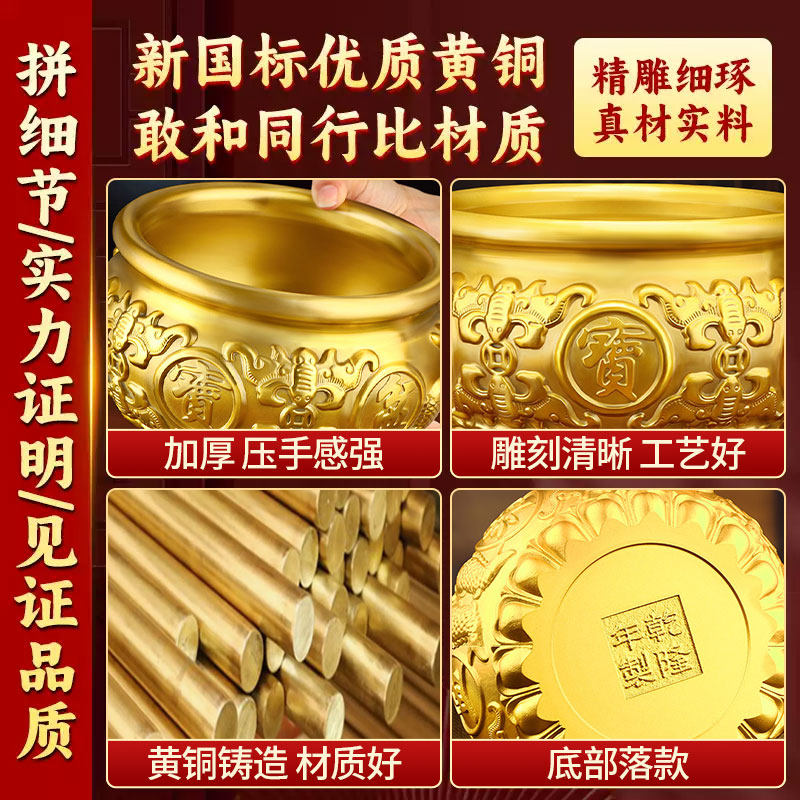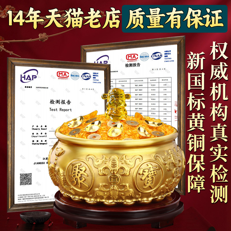 聚宝盆摆件2026年新款招财聚财纯铜办公室客厅装饰品开业黄铜水晶