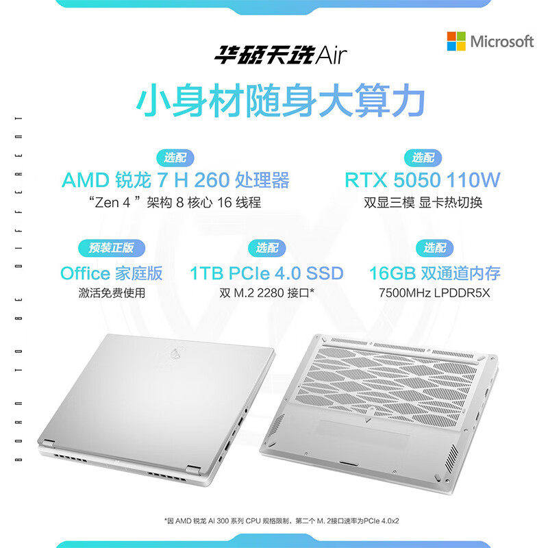 【政府补贴15%】华硕天选Air 锐龙7 H 260 14英寸RTX5060独显电竞AI全能轻薄游戏本学生设计办公笔记本电脑