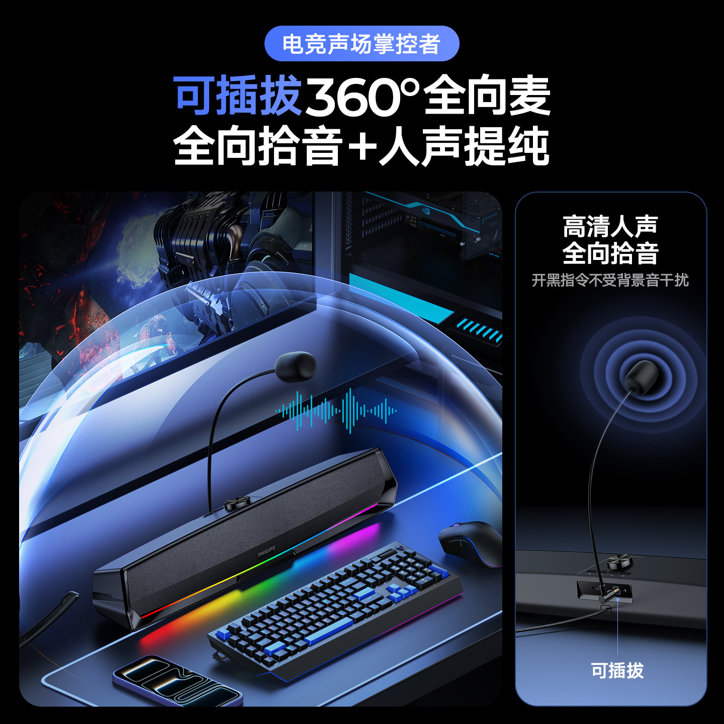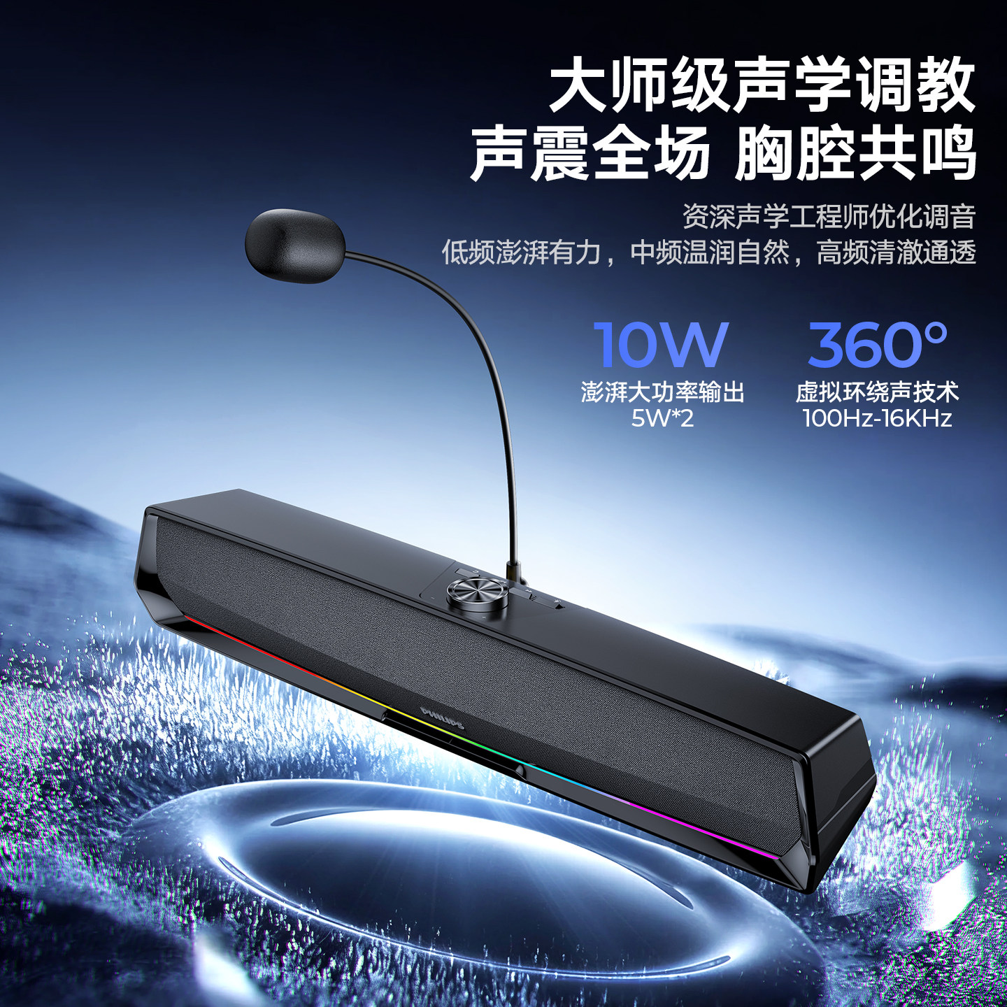 飞利浦电脑音响台式家用桌搭电竞音箱有线蓝牙桌面游戏麦克风一体