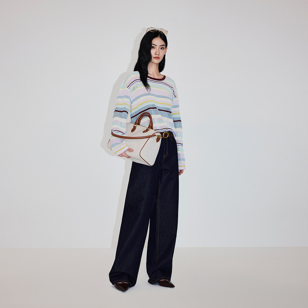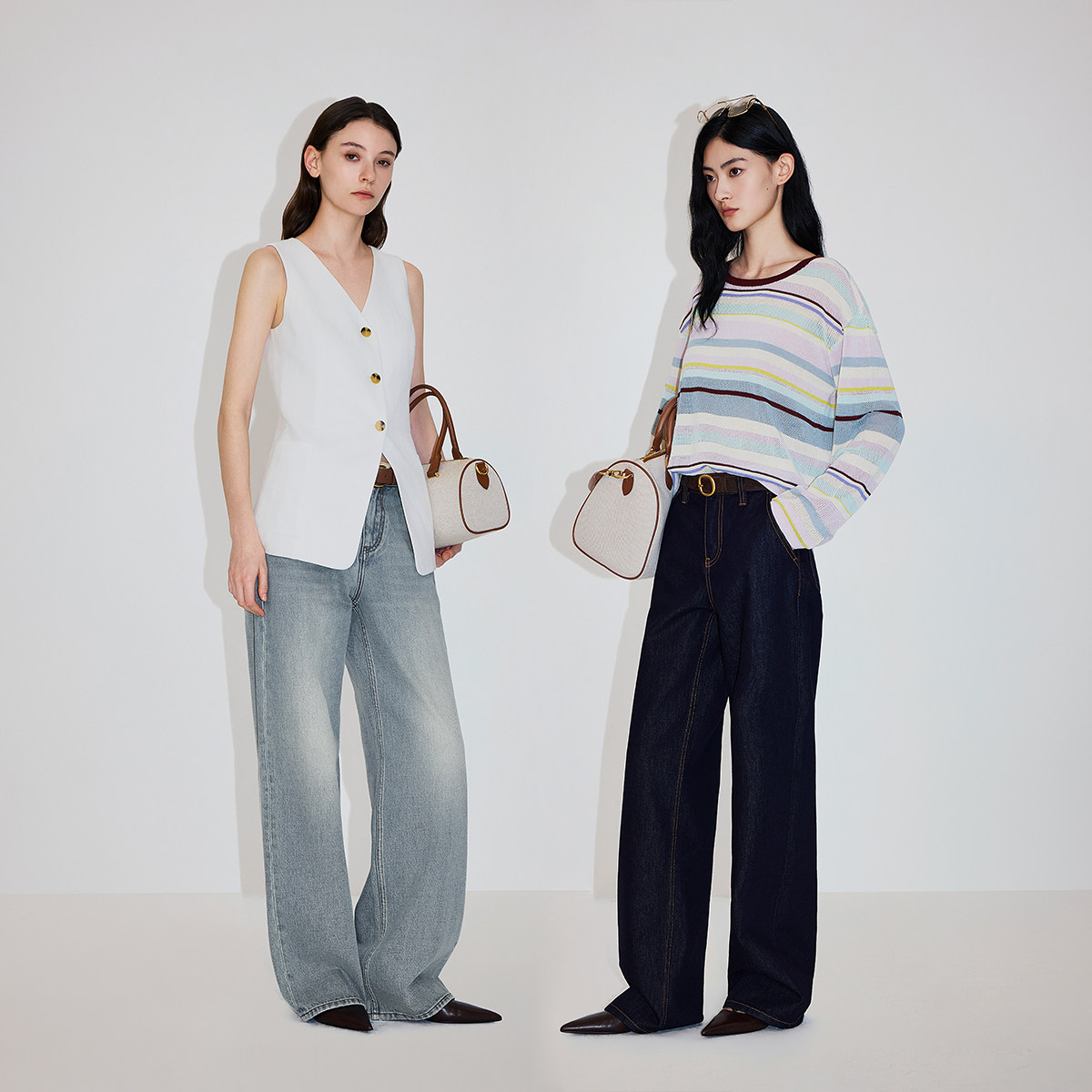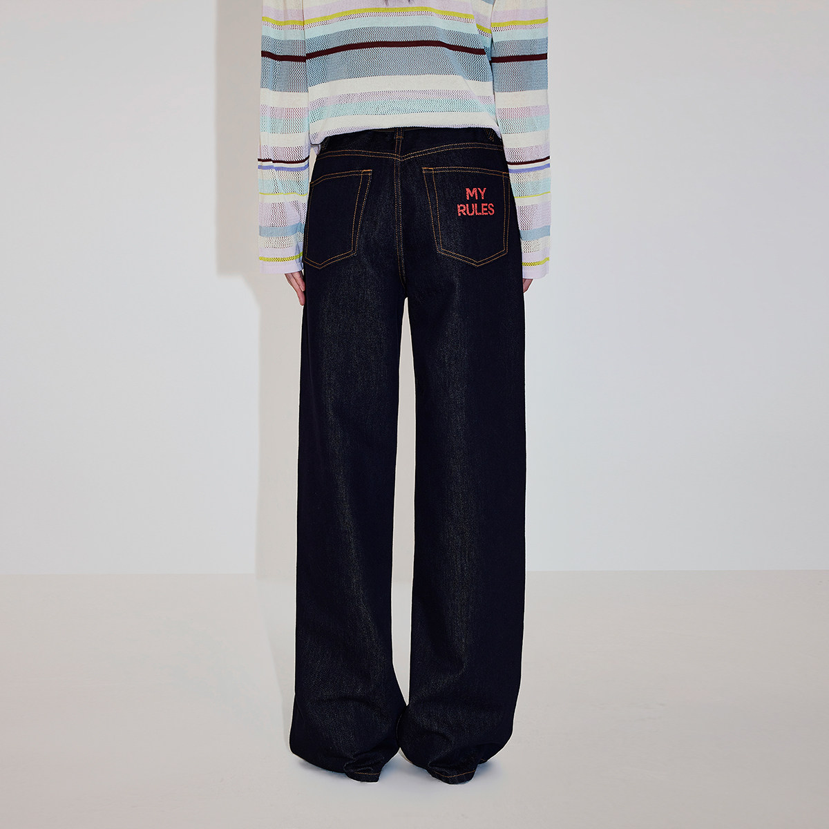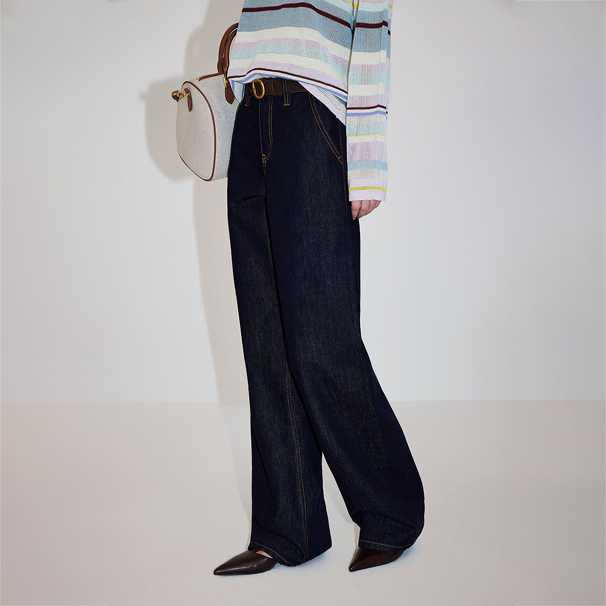 撞色双腰头,易穿大直筒裤