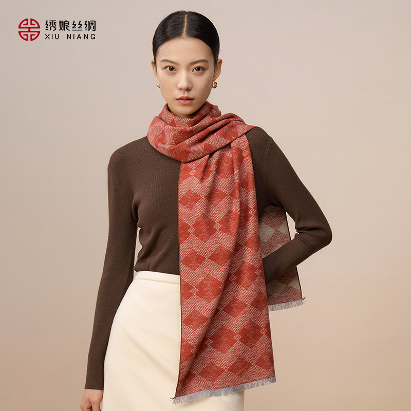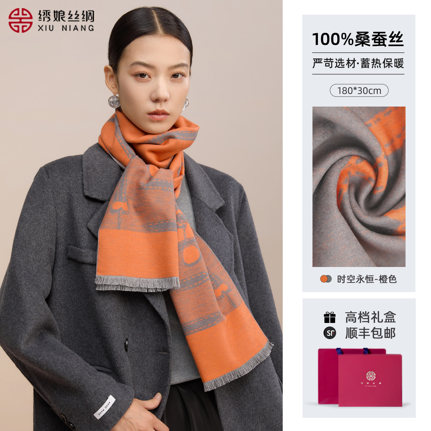绣娘丝绸桑蚕丝真丝绒围巾高级披肩女外搭护颈围脖送女友礼物礼盒