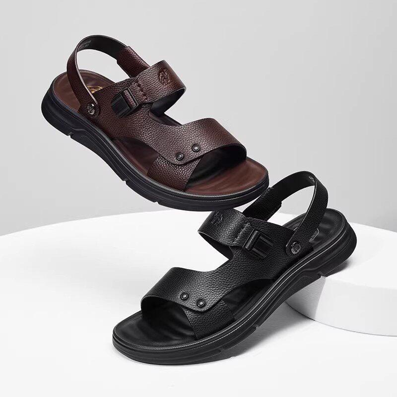 啄木鸟沙滩鞋男士头层牛皮牛筋底凉鞋真皮休闲防滑两用爸爸凉拖鞋