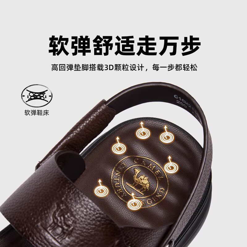 骆驼凉鞋男款2026新款夏季皮凉男鞋真皮沙滩鞋子男士高端爸爸外穿