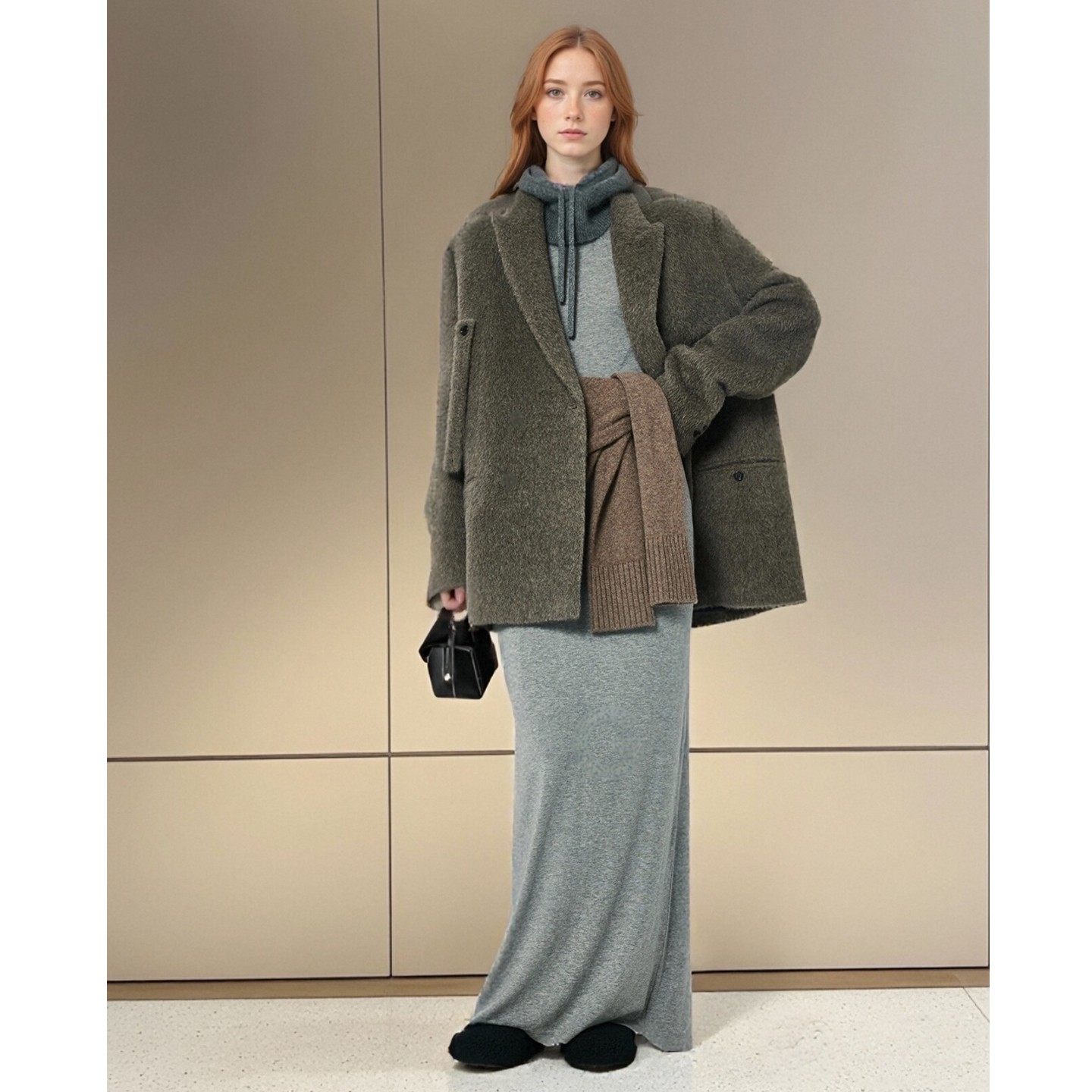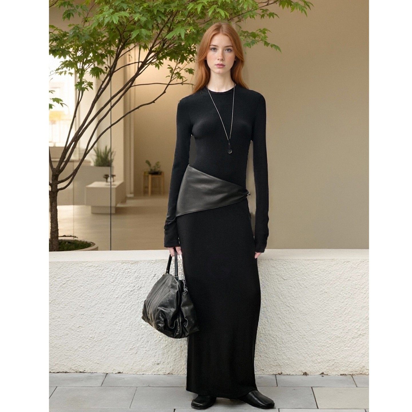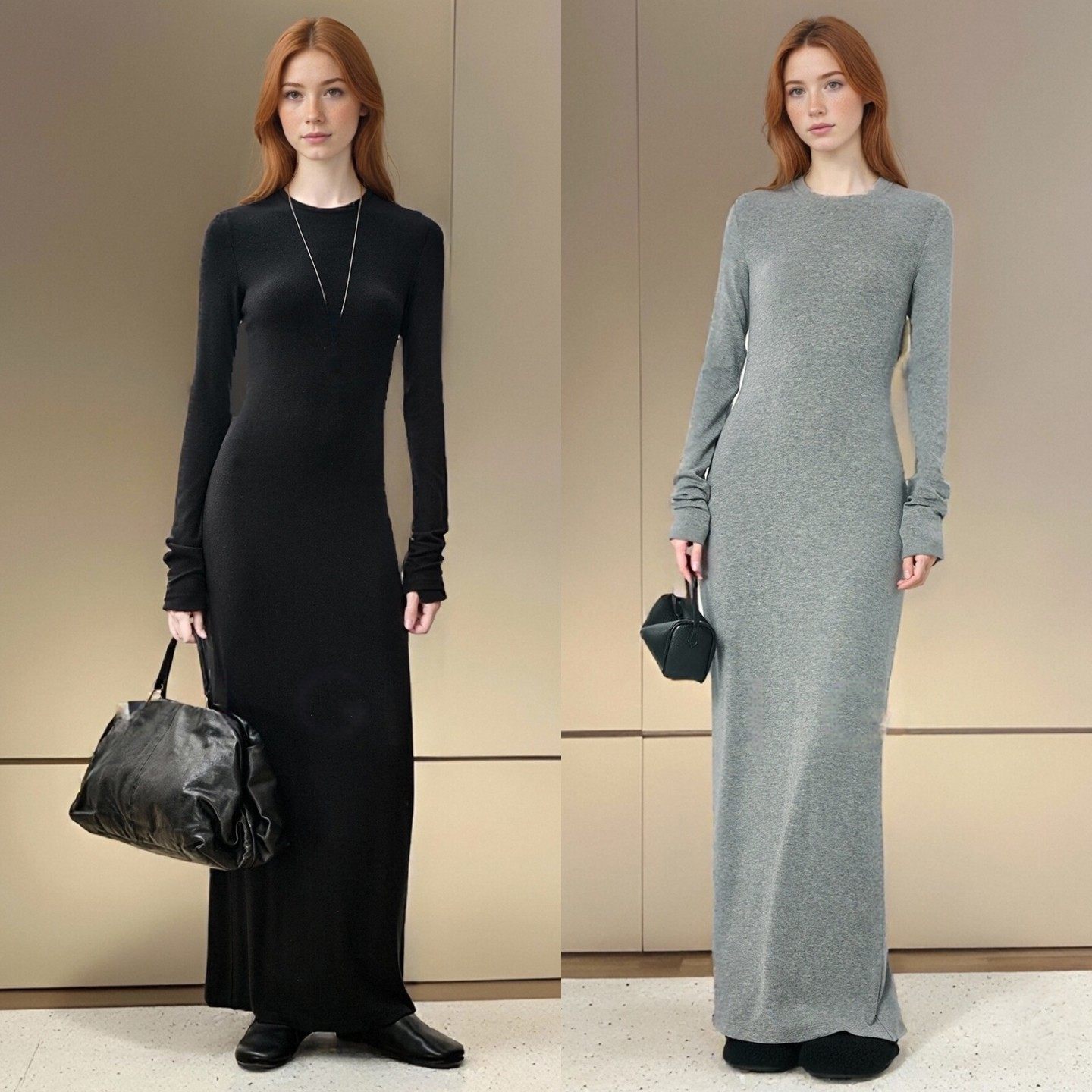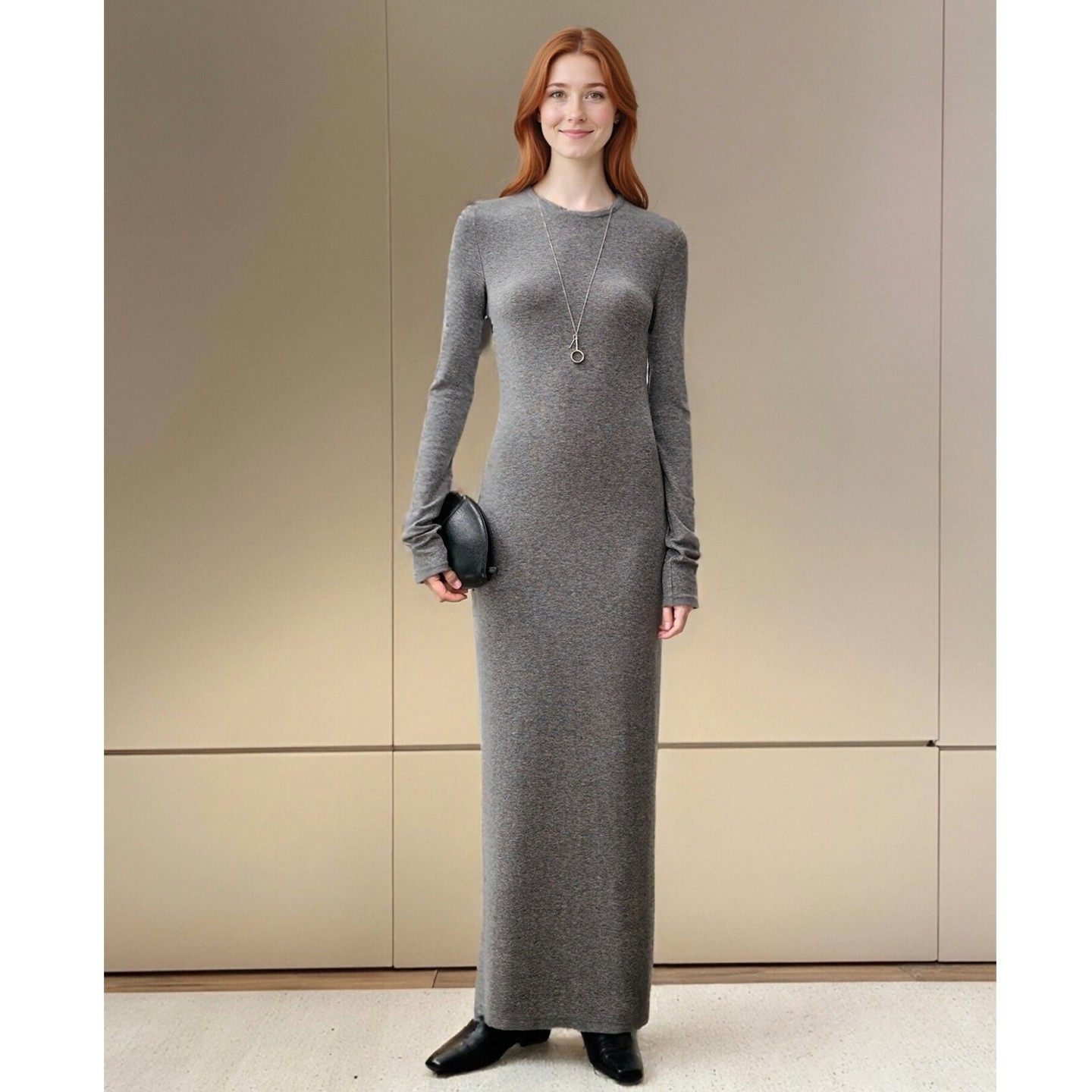 2025秋冬新款羊毛极简后开衩针织连衣裙女修身显瘦气质长裙打底裙