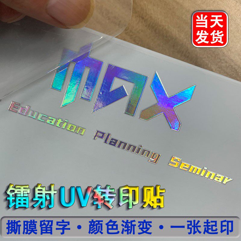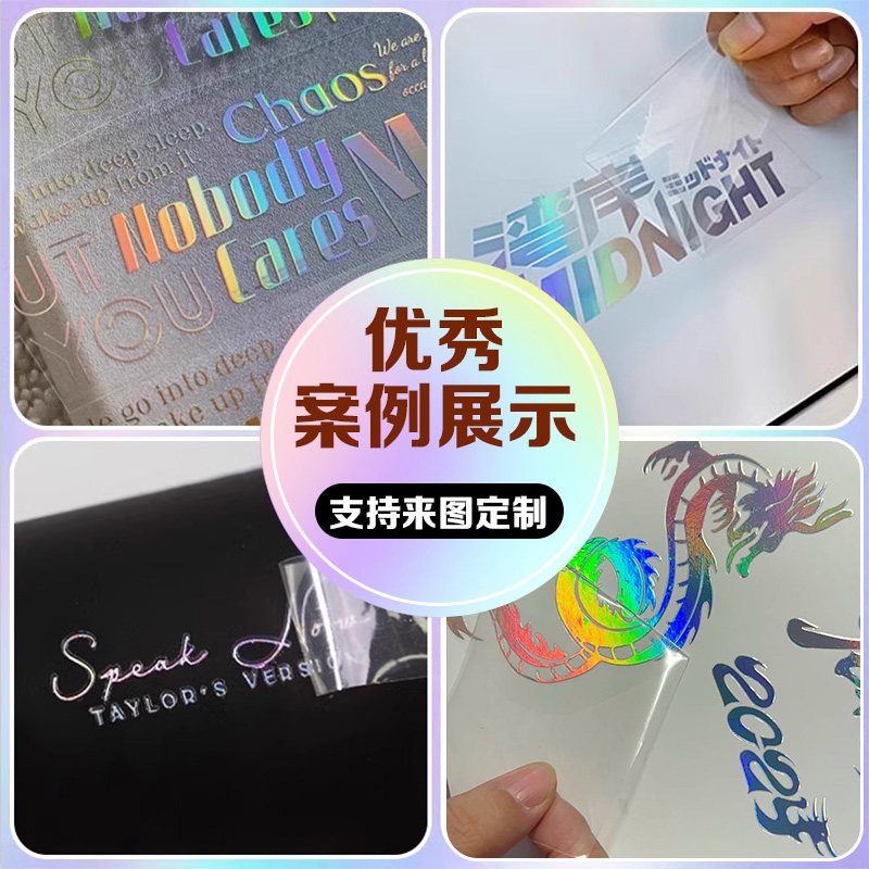 镭射转印贴定制渐变彩色商标uv水晶标贴撕膜留字透明防水烫金银不干胶标签打印镂空立体反光字母丝印logo贴纸