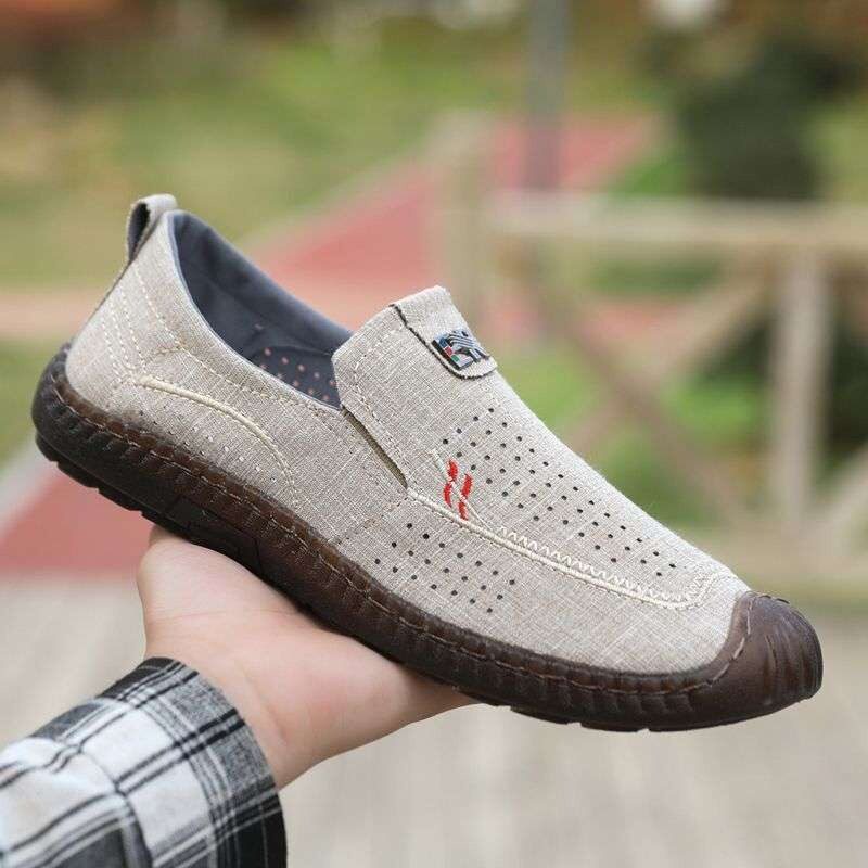 新款男士透气飞织休闲鞋一脚蹬简约布鞋软底软面时尚男鞋懒人鞋