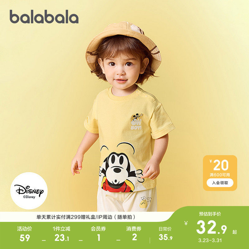 【迪士尼】巴拉巴拉婴儿t恤宝宝短袖上衣男童女童轻薄新款夏装萌