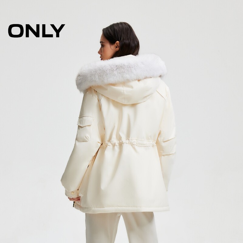 【鹅绒服】ONLY冬季 户外工装风狐狸毛领宽松显瘦收腰派克羽绒服
