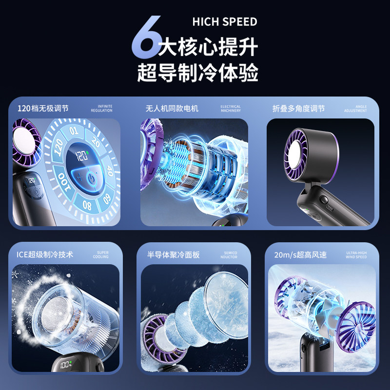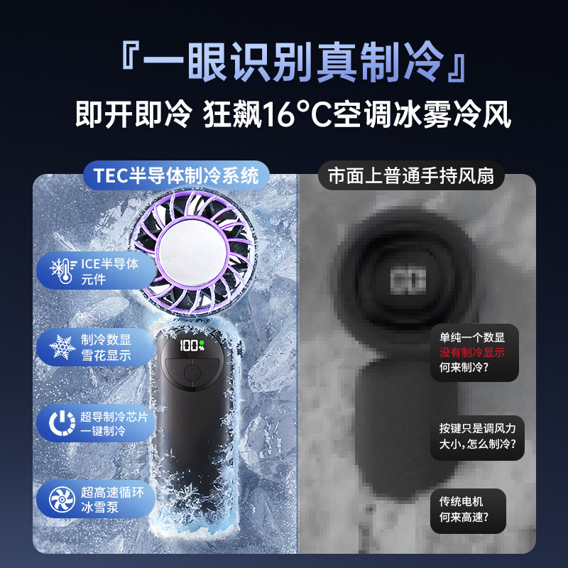 2026年新款手持小风扇无叶涡轮制冷小空调冷风冰敷手持风扇便携式随身小型迷你usb充电式静音电风扇降温神器