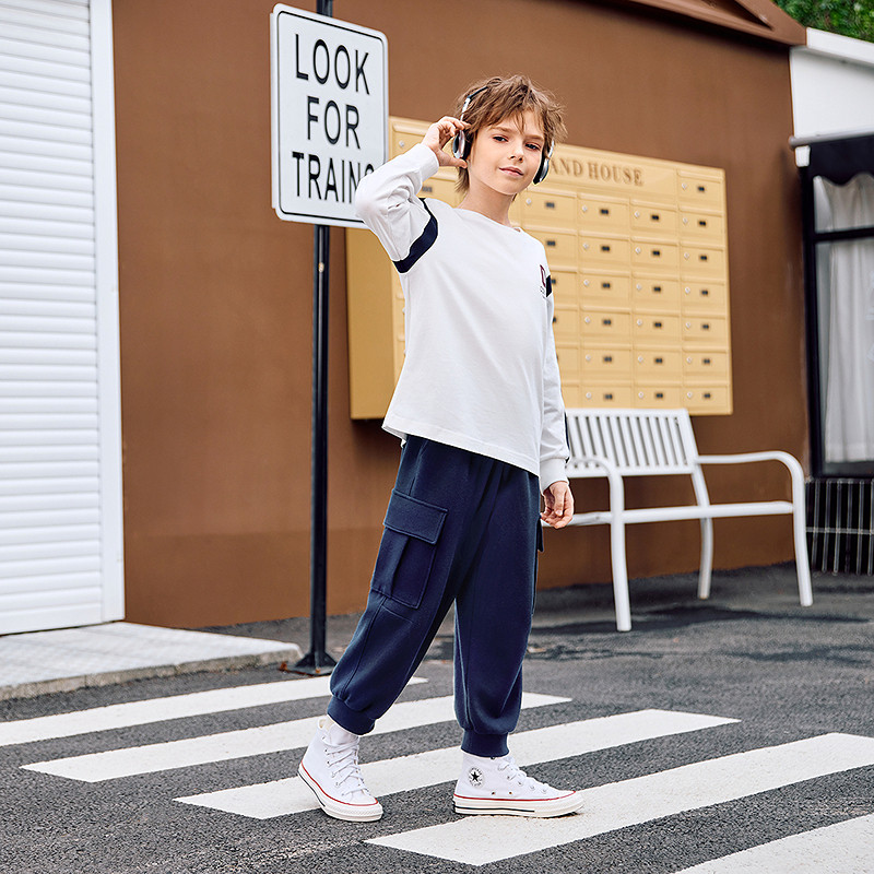 匡威童装男童长裤青少年春季新款卫裤休闲工装裤暗纹束脚时尚抽绳