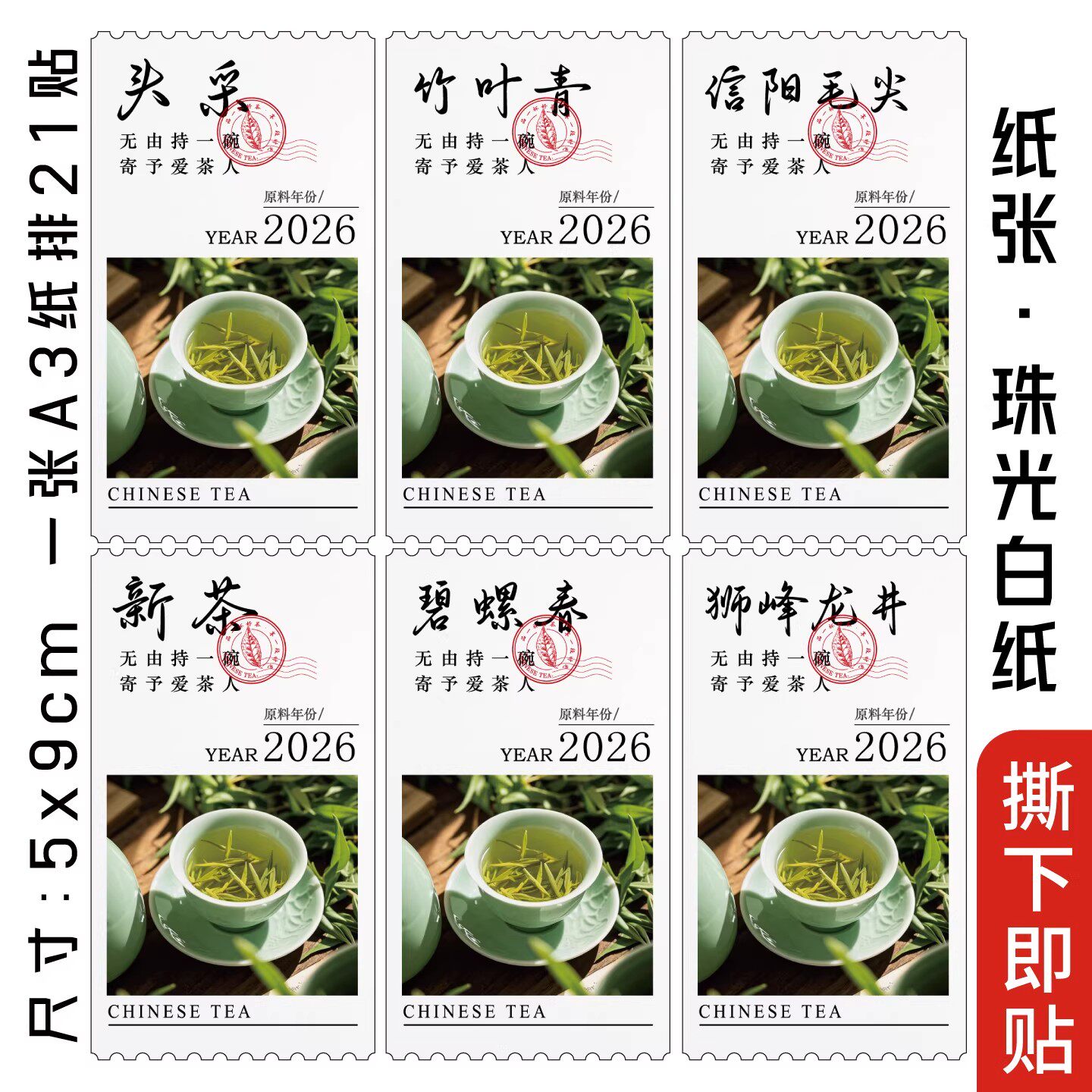 2026春茶碧螺春明前龙井信阳毛尖竹叶青私房茶绿茶标签贴纸封口贴