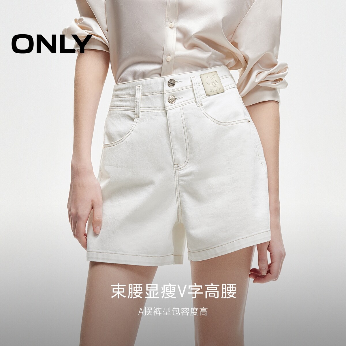 【ONLY奥莱】春季简约复古高腰显瘦两粒扣口袋A字短裤牛仔裤女