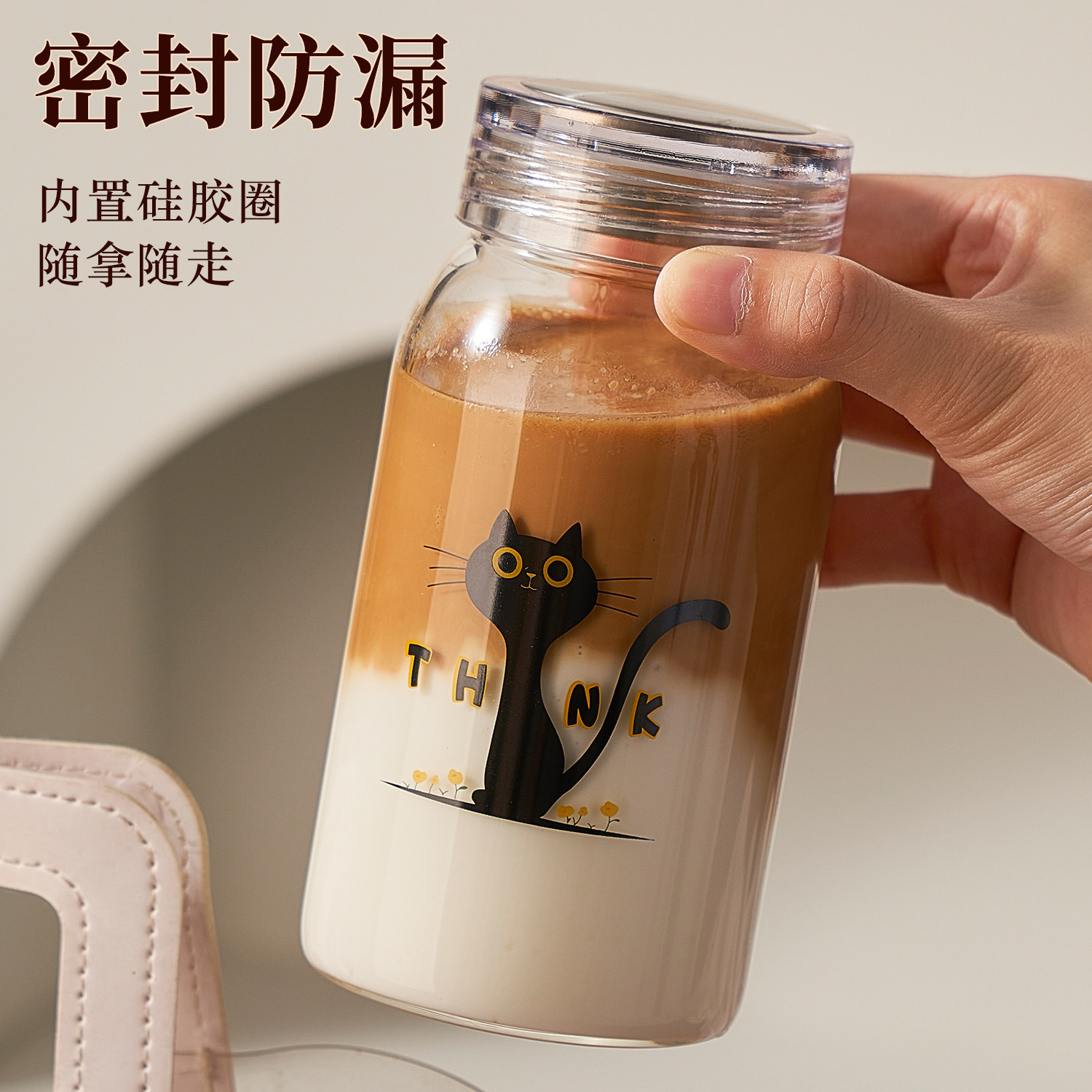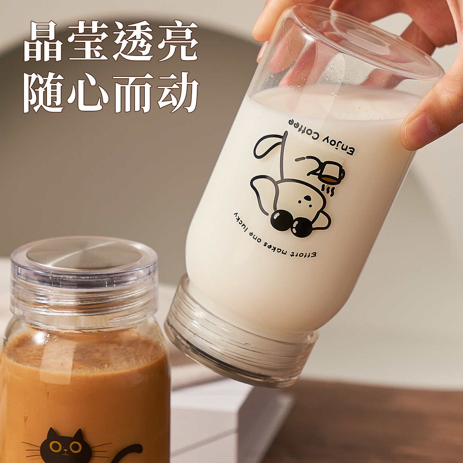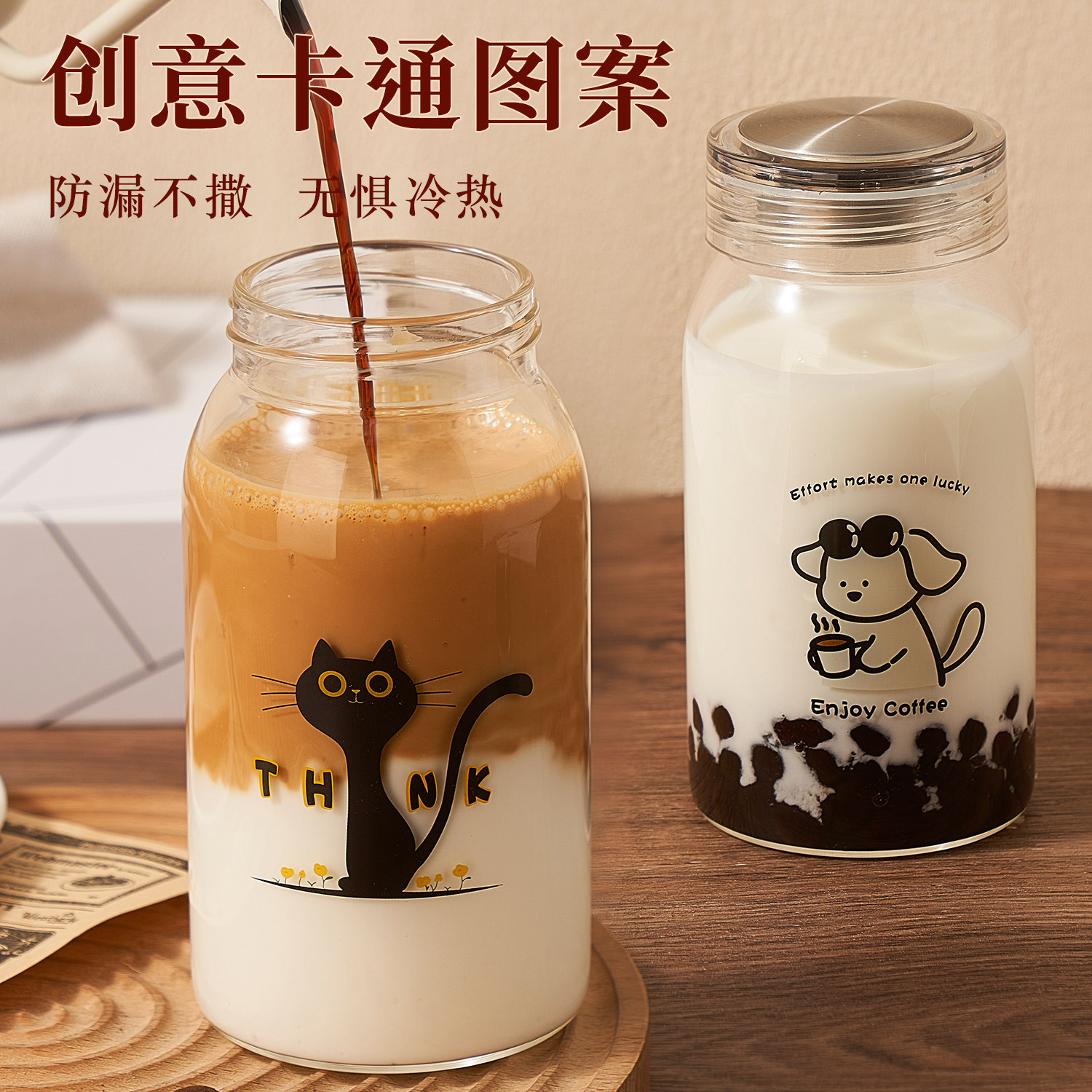 可爱卡通玻璃杯大容量水杯2024新款女杯子办公室家用牛奶杯奶茶杯