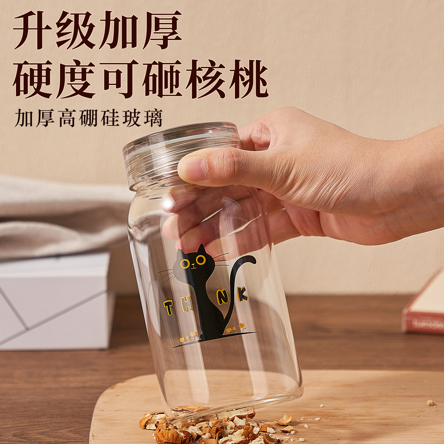 玻璃杯ins风可爱水杯女生高颜值带盖勺办公室咖啡早餐小熊杯子