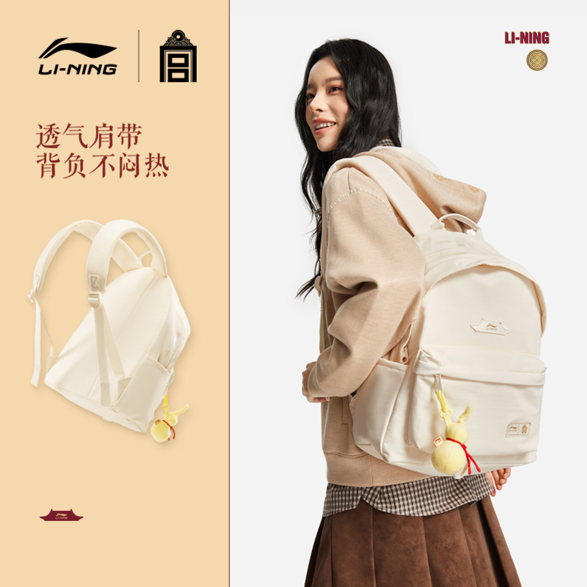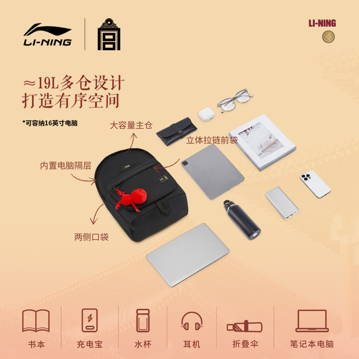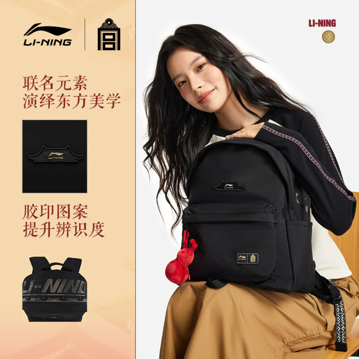 李宁中国文化故宫联名双肩包男女26新年鸿运穿搭通勤背包学生书包