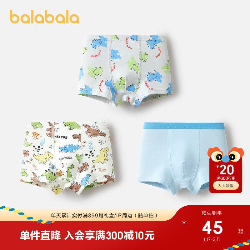 【balaOne】巴拉巴拉儿童内裤棉男童不夹pp抗菌裆四角短裤三条装