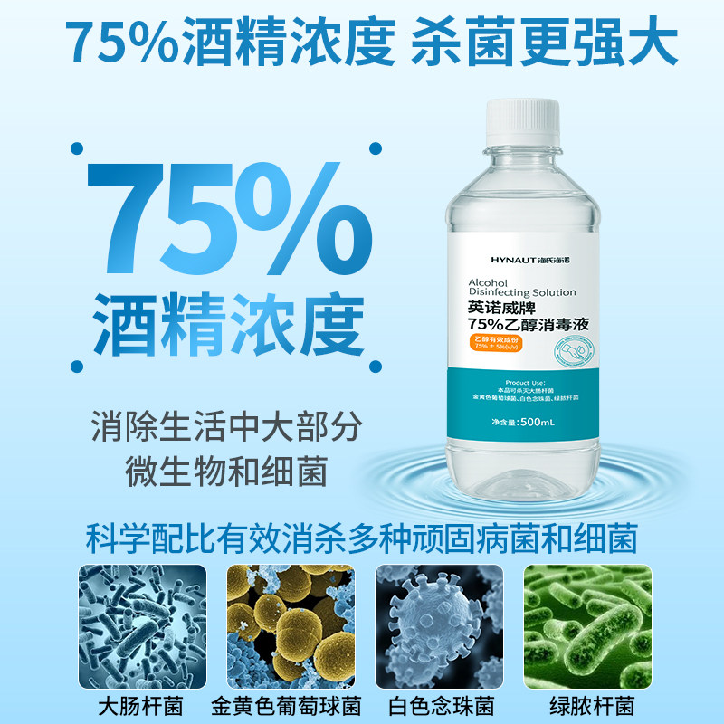 海氏海诺75度酒精消毒液家用杀菌室内物品清洁免洗手75%乙醇喷雾