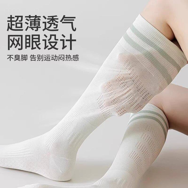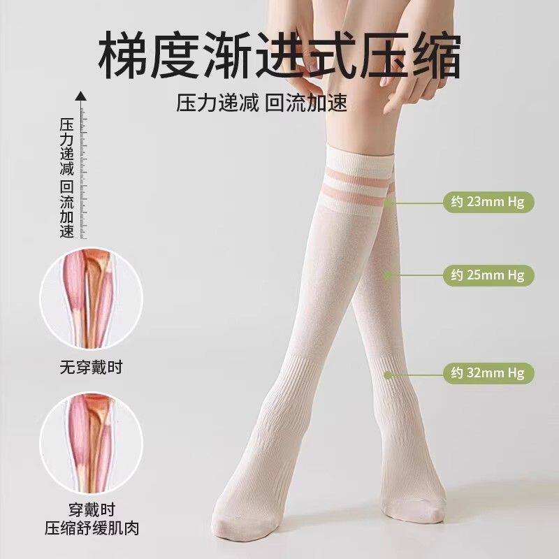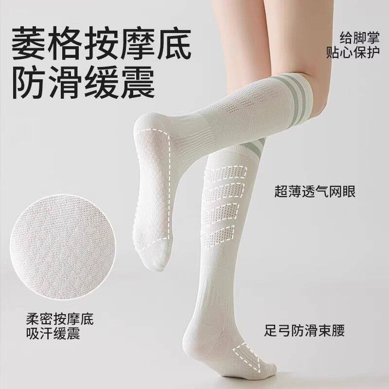 小腿运动袜子女棉袜羽毛球健身跑步长筒袜瑜伽夏防滑专业白色压缩