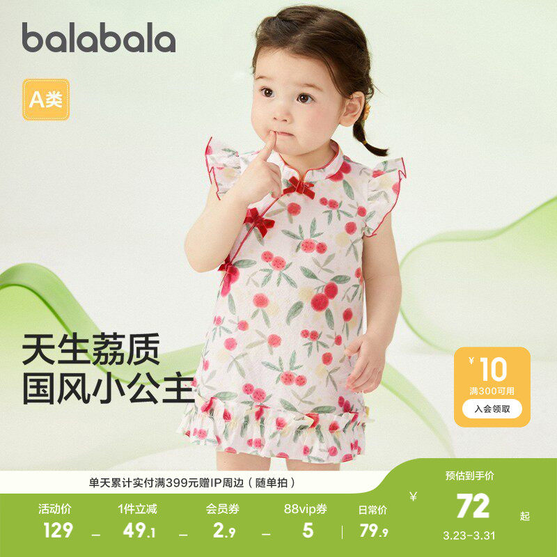 巴拉巴拉童装婴儿连衣裙女童裙子宝宝公主裙夏装国风新中式甜纯棉