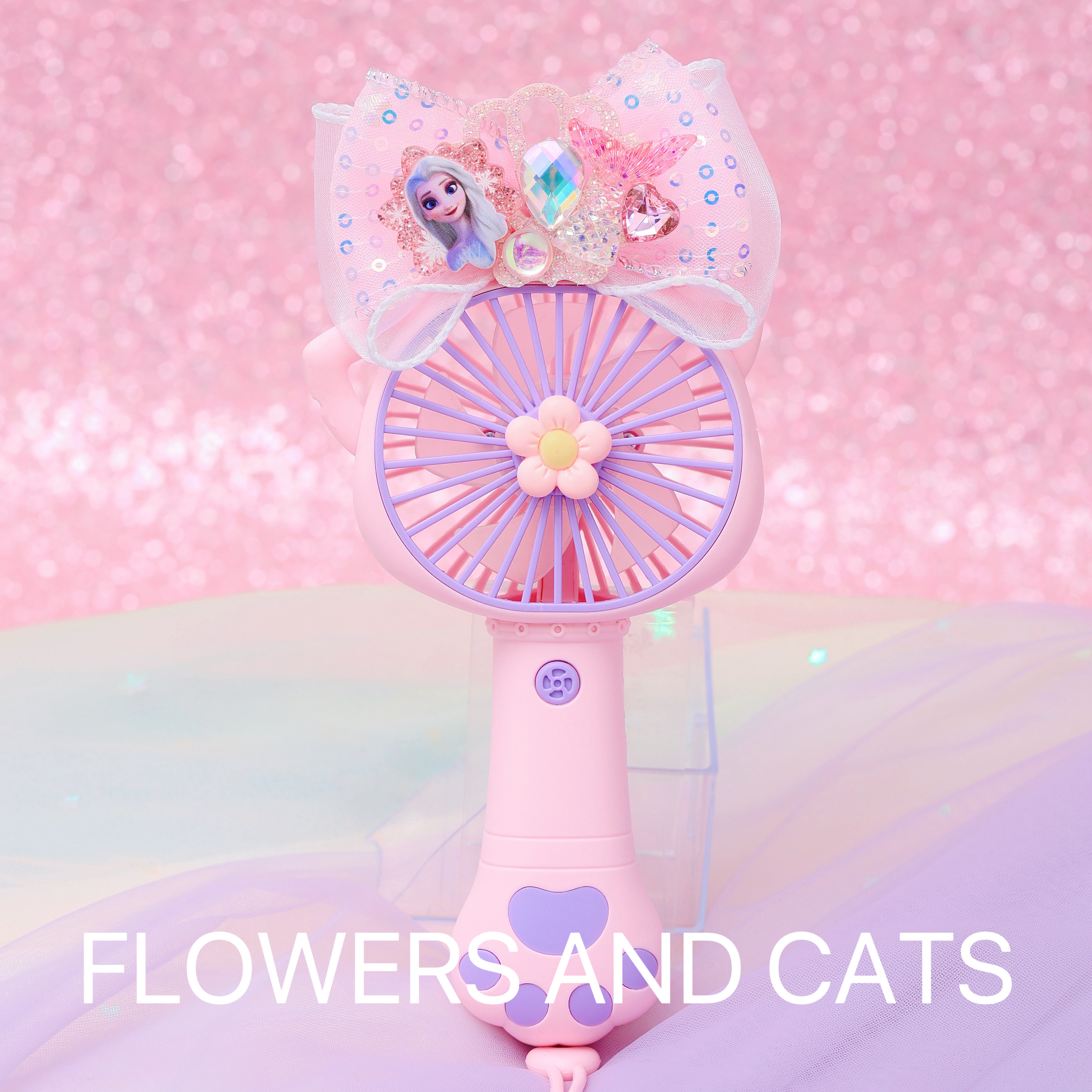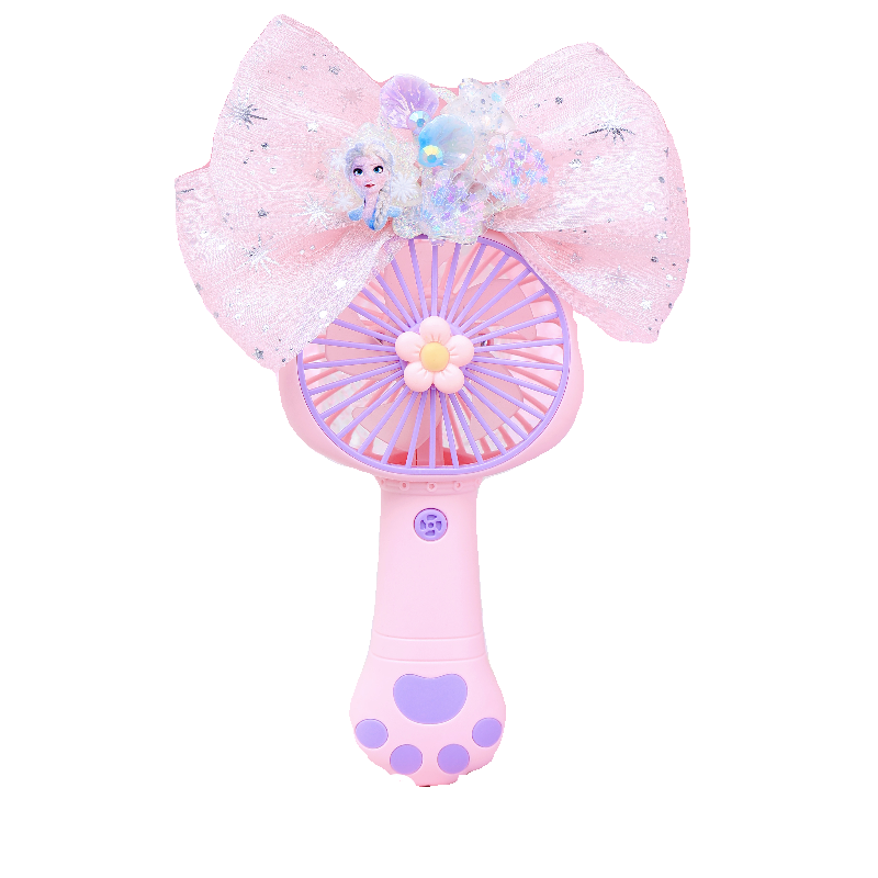 卡通爱莎冰雪奇缘手持迷你宝宝小风扇充电线便携静音学生女童粉色
