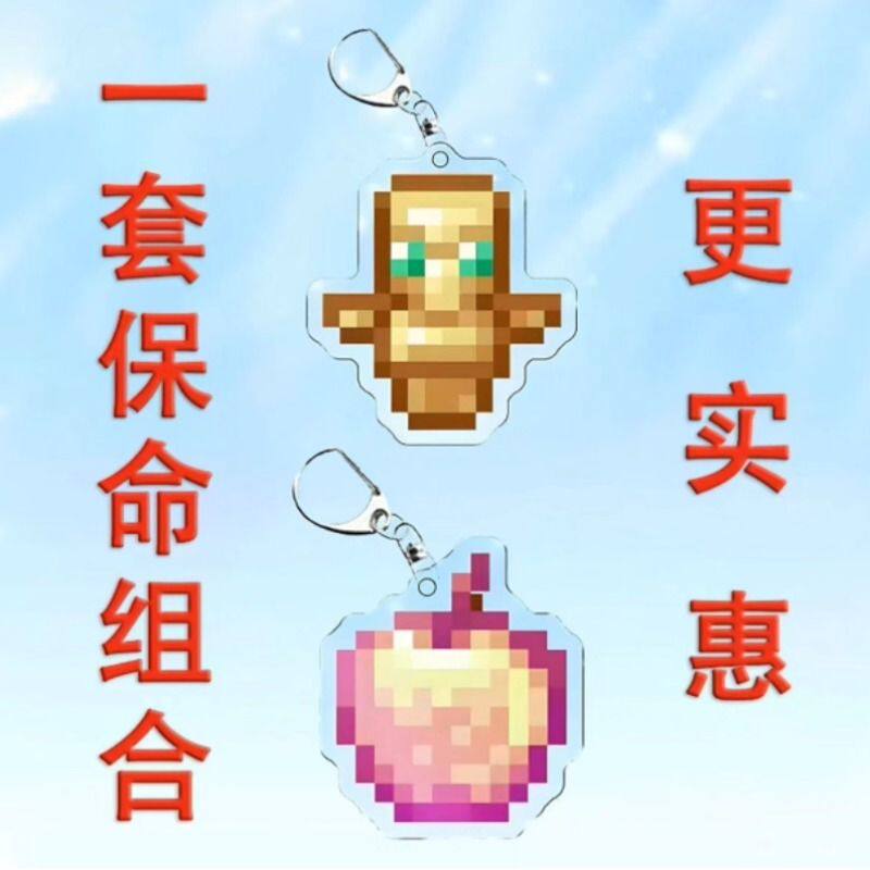 我的世界钥匙扣Minecraft 不死图腾附魔金苹果亚克力挂件保命套装