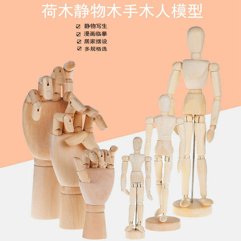 包邮 漫画12寸木人模型 40cm木头人 木手素描木偶人关节人偶木手