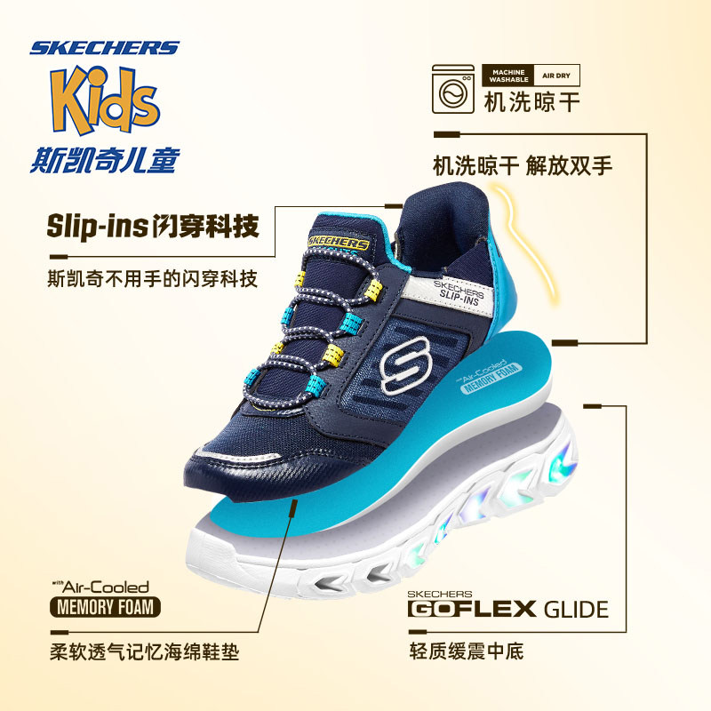【新年礼物】斯凯奇闪穿鞋儿童秋冬运动鞋一脚蹬闪灯鞋男童休闲鞋