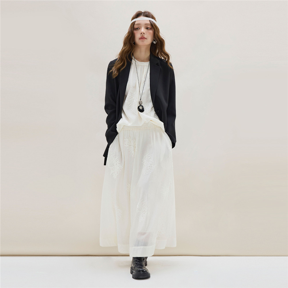 RAPPEYE 西装半裙高级学院感百褶刺绣长款显瘦百搭高腰a字半身裙
