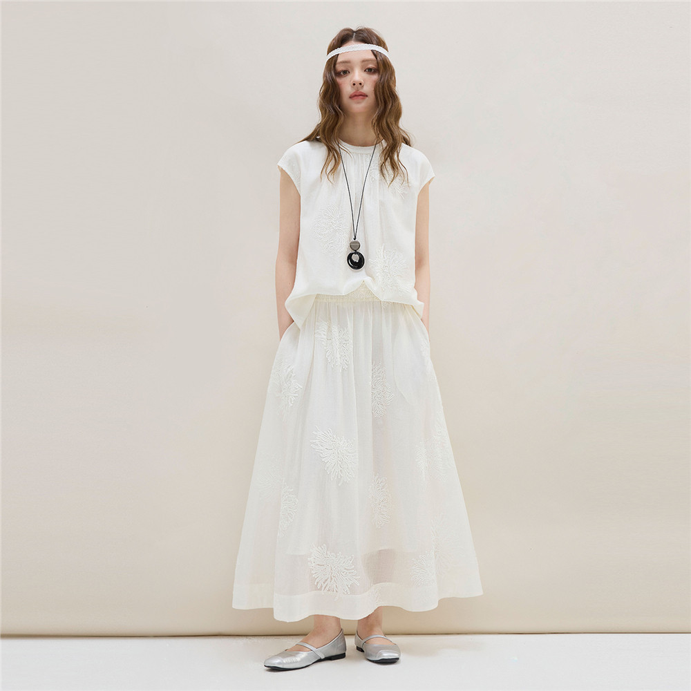 设计师款佐丹奴白色半裙女夏季新款仙女裙松紧腰半身长裙18465914
