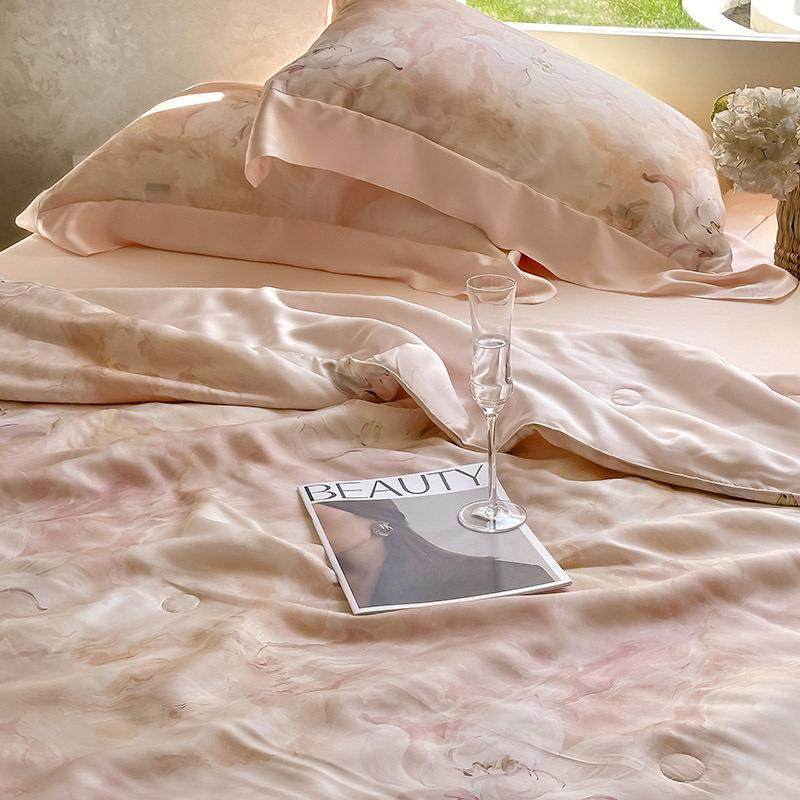 法式浪漫田园花卉100S夏季凉感丝滑天丝印花夏被四件套少女心床品