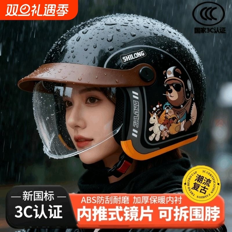 3C认证电动车头盔女士冬季保暖摩托电瓶车复古四季通用冬天安全帽