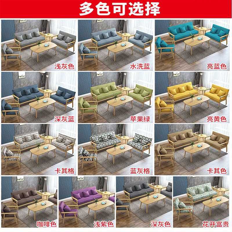 实木沙发茶几组合家用客厅出租屋布艺单双三人小沙发椅小户型