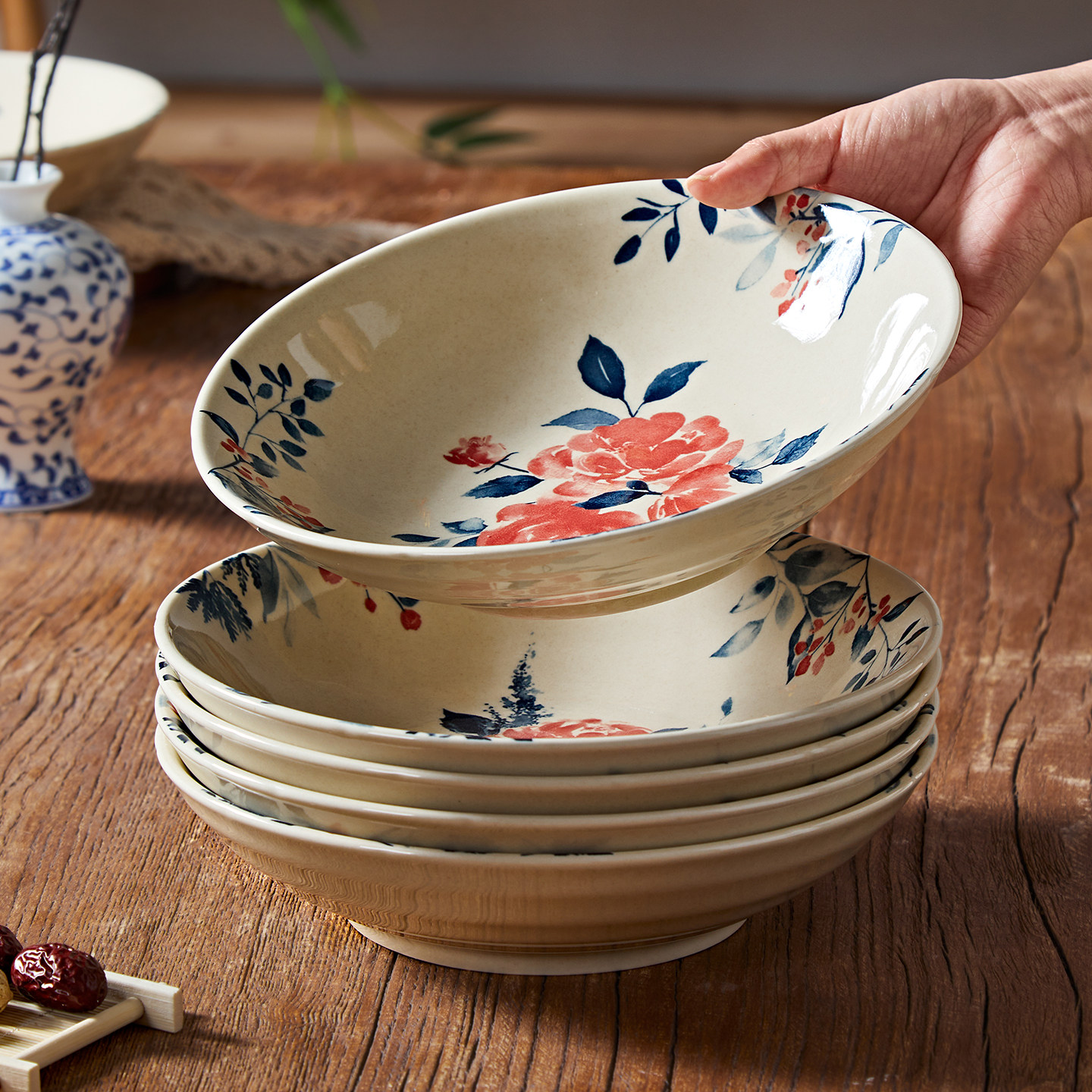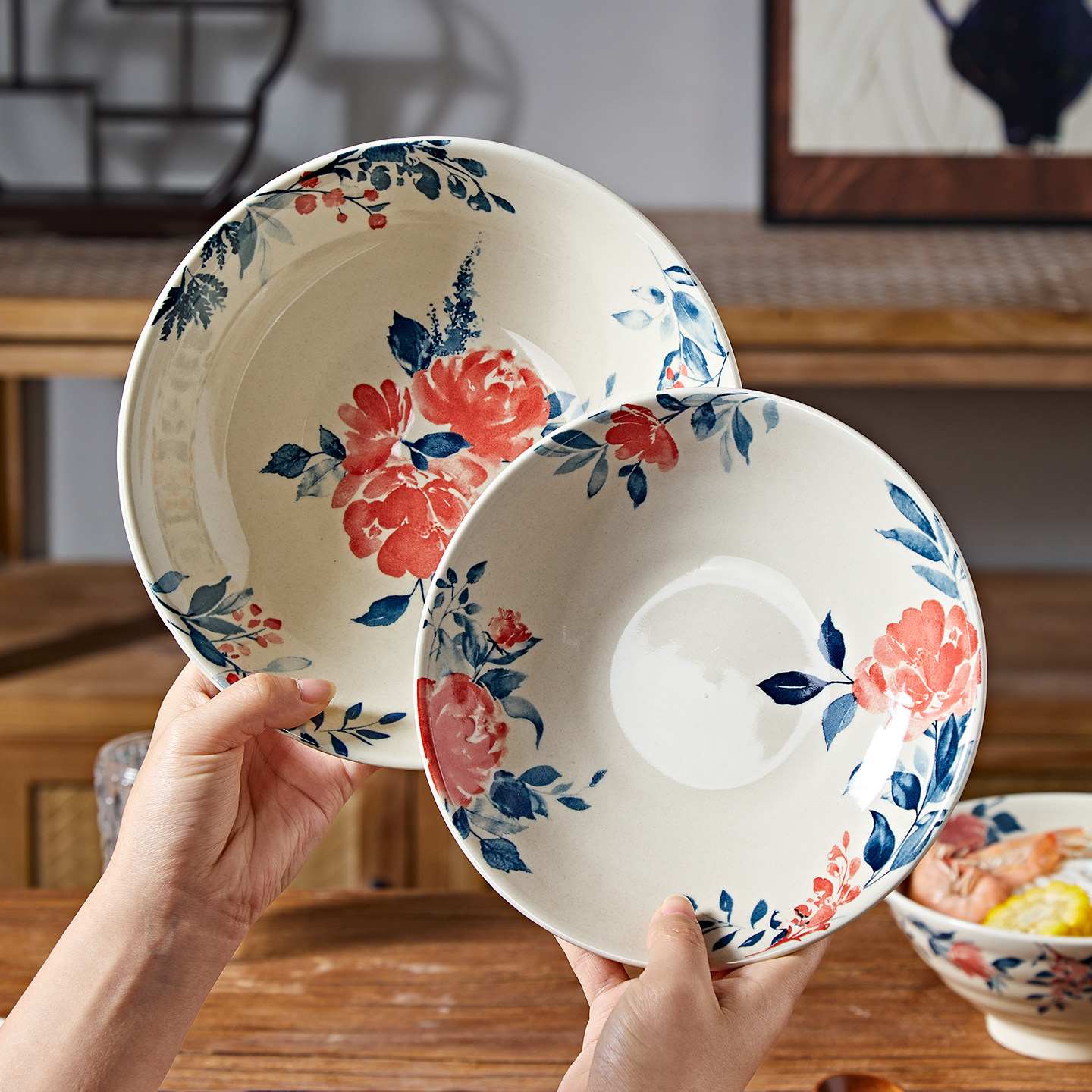 日式陶瓷碗家用2026新款高颜值釉下彩餐具饭碗汤面碗碗碟盘子碗具
