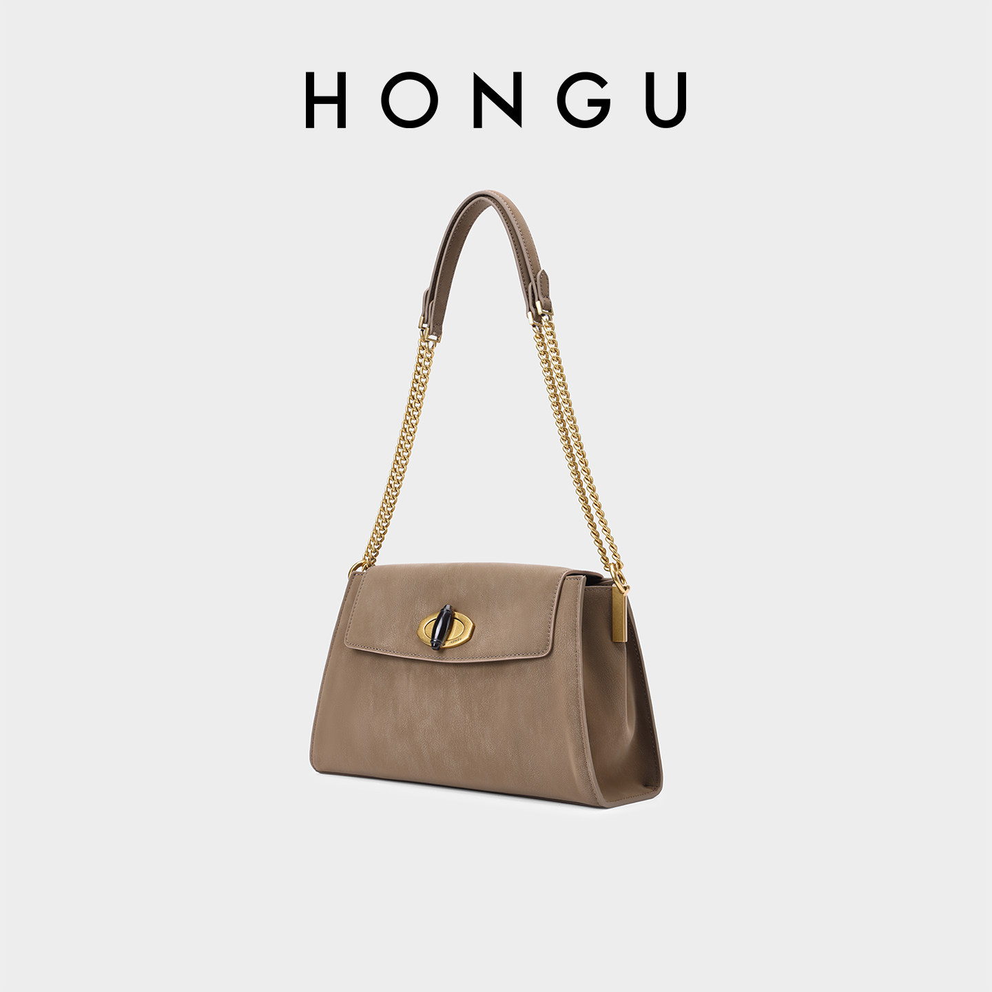 红谷包包2026新款链条真皮单肩腋下包通勤高级感斜挎包牛皮女士包