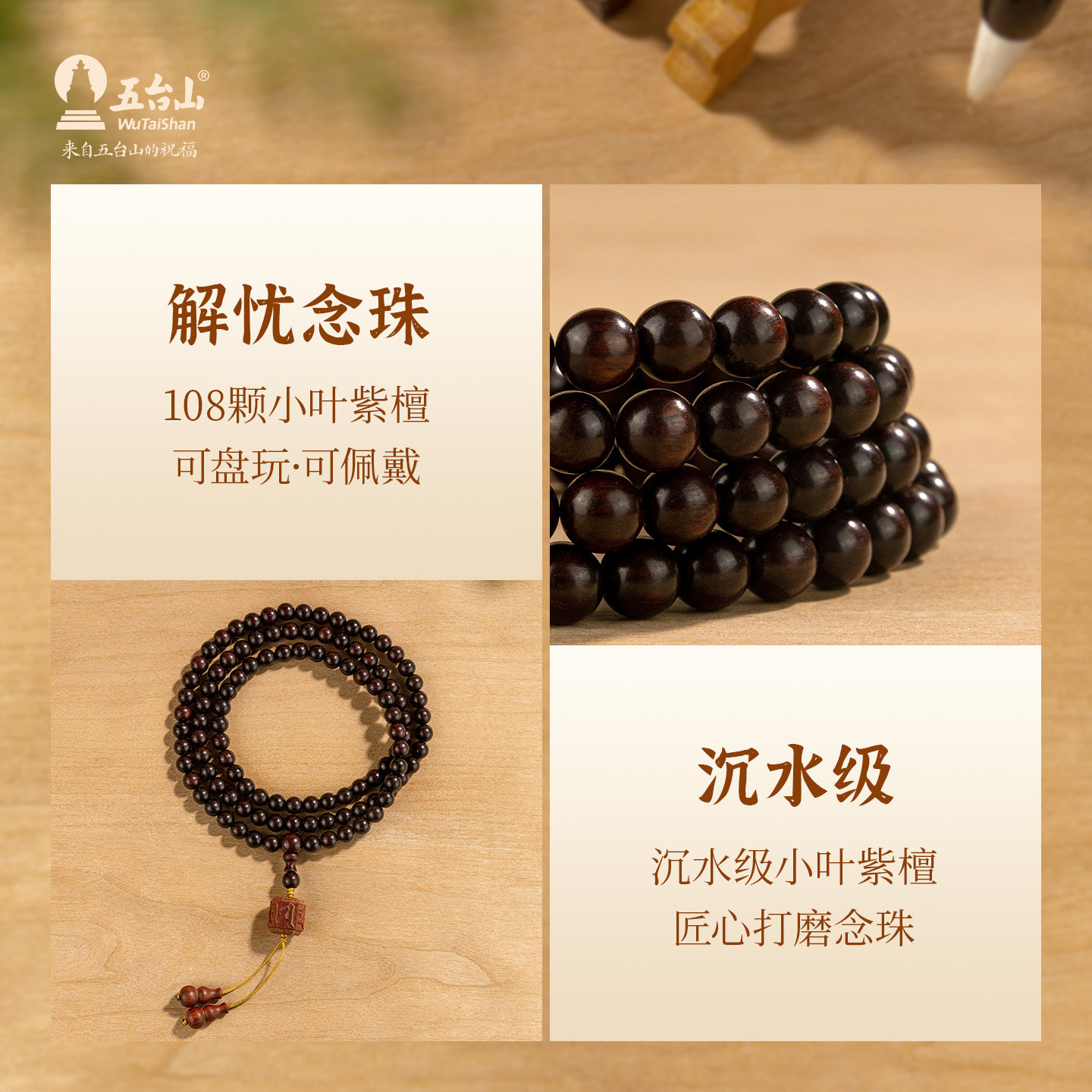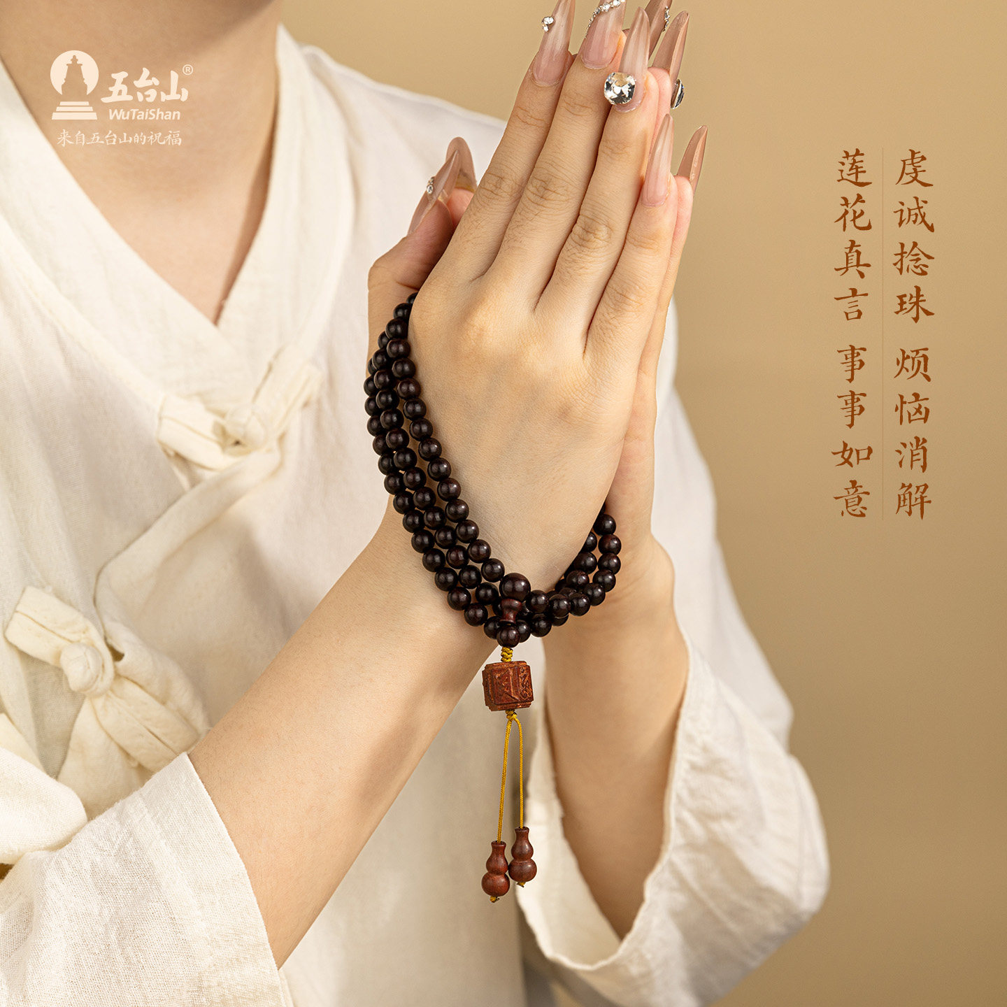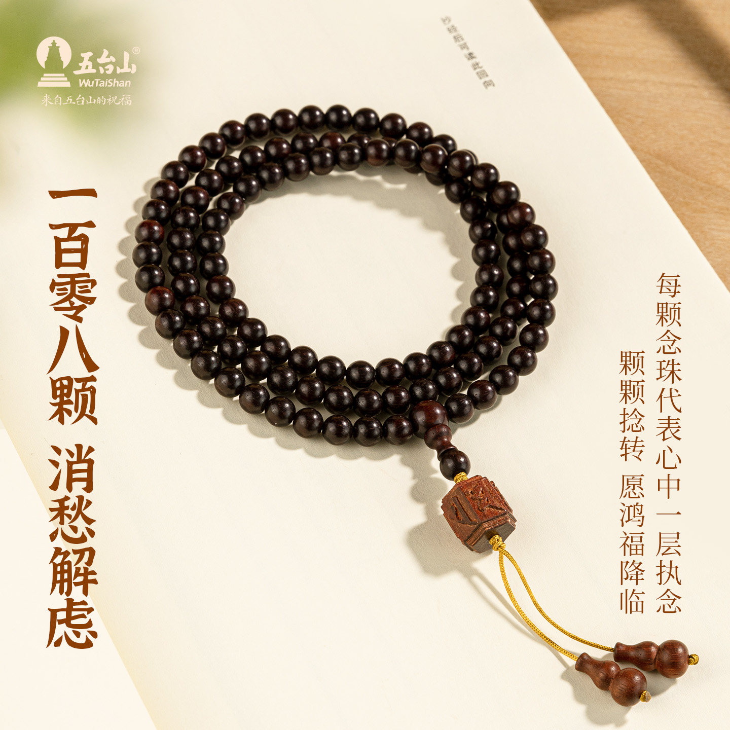 五台山小叶紫檀天然手串108颗念珠六字真言文玩盘玩紫檀木质手链